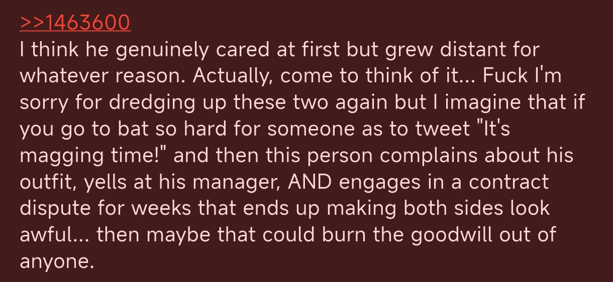 >>111057122The Sykunno thing is a rabbit hole and currently Dramafag Mujin is being raked over the coles because of it.