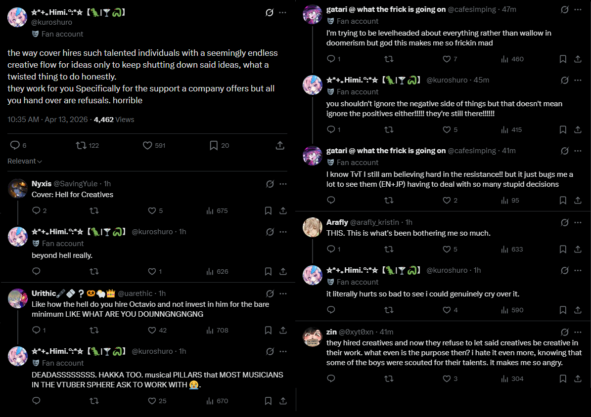 >>111057062The argument is that Cover said no to all the creative projects the homos suggested. See: Gura.
