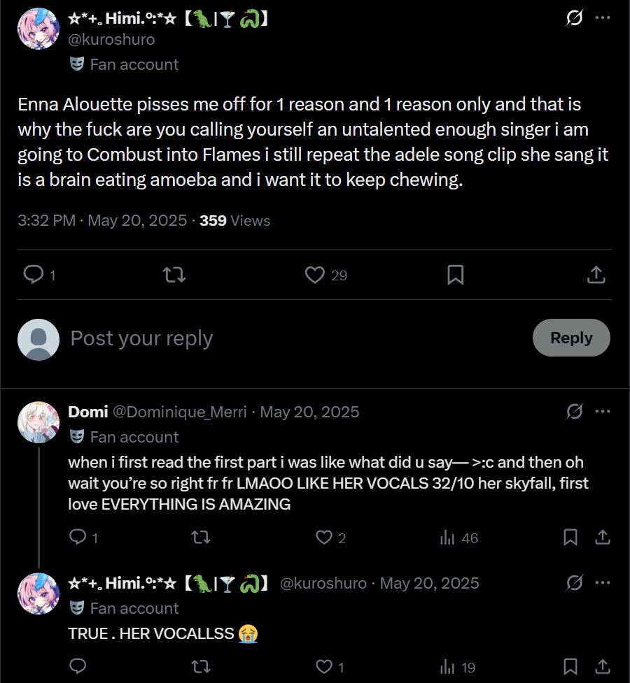 >>111056942>>111056995by "most musicians in the vtuber sphere" she means enna