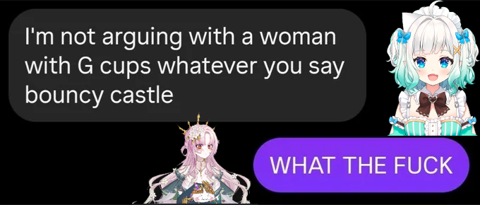 Based On True Events Edition>What is /BIG/?/BIG/ is a thread to find, share, and discuss the biggest indie vtubers who have a 3-month average of 1000 viewers or more.>Can I shill my 999 CCV oshi here?No. 4views or higher only.>Live /BIG/shttps://vt.rita.moe/?tag=thread:/BIG/>Wordcloud creatorhttps://catalog.neet.tv/harlequin.html>/BIG/ logohttps://files.catbox.moe/jk4ric.png>Vod channelshttps://rentry.org/Indie_Vod_Archives_lig>Ferrets!https://www.twitch.tv/ferretsoftwareOther useful threads:>>>/vt//lig/>>>/vt//xvsj+/>>>/vt//swarm/>>>/vt//flip/>>>/vt//haha/>>>/vt//mint/Previous thread: >>111038421