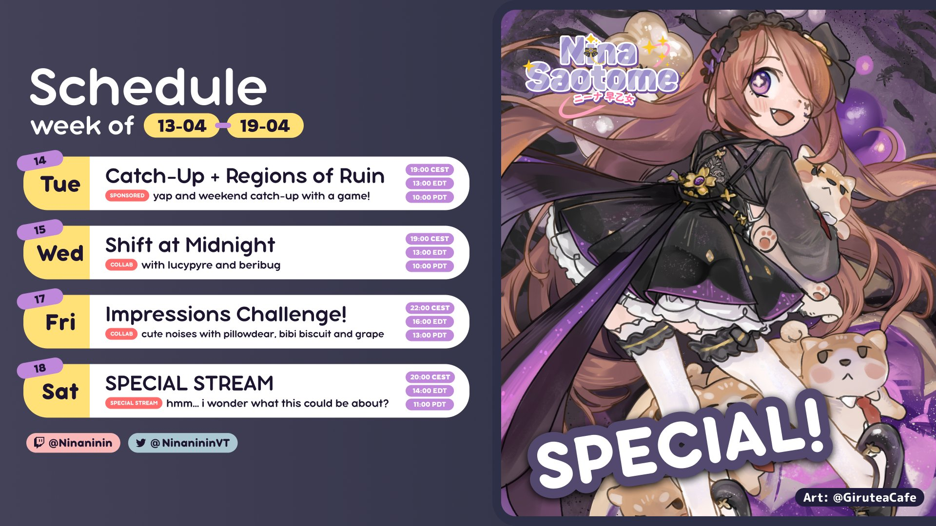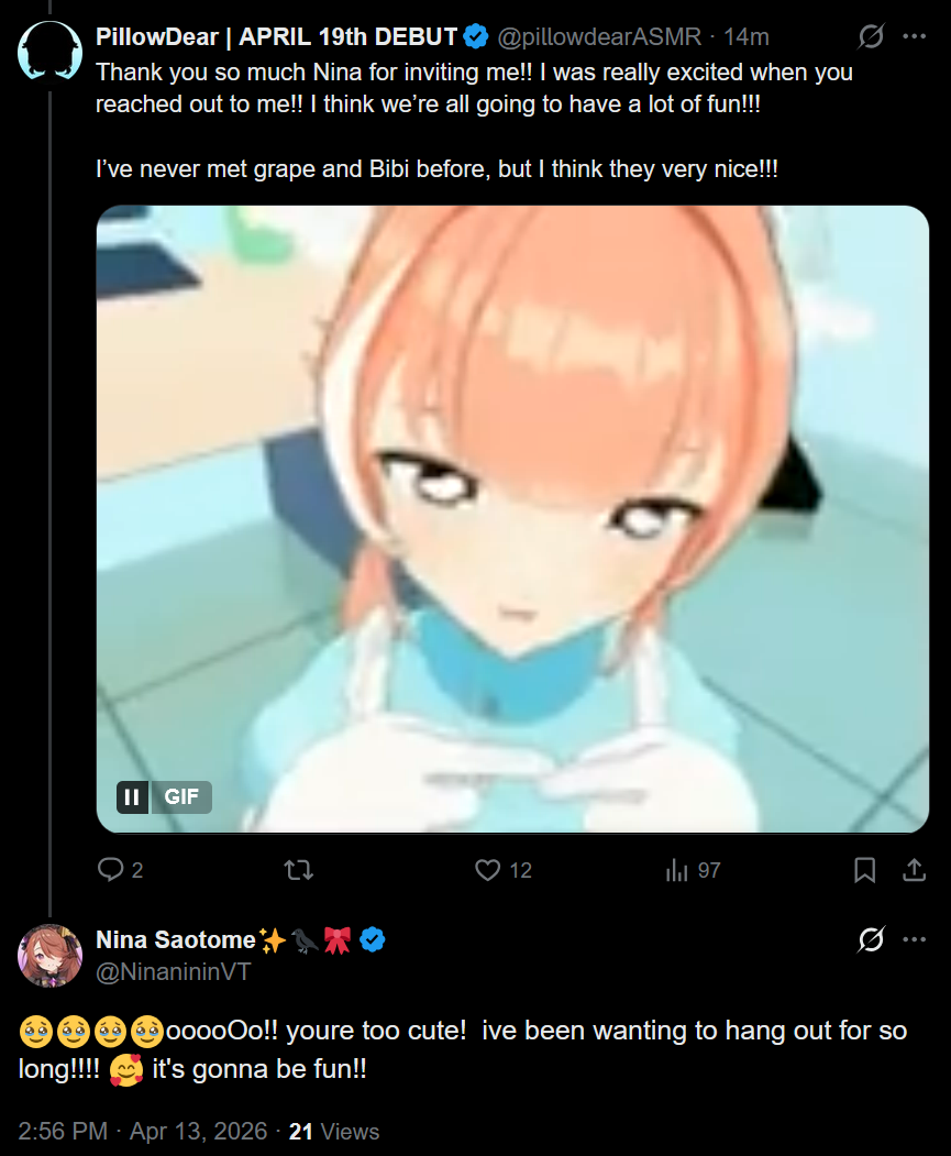 REEEEEEEEEEEEE Edition>What is /lig/?/lig/ is a thread for viewers to find, share, and discuss indie vtubers who have on average 500 viewers or more.>Why /lig/?Large indie vtubers have more net fans, but they are outnumbered by 2views by the thousands. This is a thread for the VIP, regardless of what language they stream on.>Can I shill my 499view oshi here?Considering averages fluctuate widely, all the way down to 100 is reasonable. The minimal requirement however is being Twitch partner or the YouTube equivalent in numbers.>Wait isn't that one a corpo?/lig/ is a thread for chuubas of a decent size who aren't defined by their corporate branding, either due to the small size of the corporation or the independence and lack of oversight granted to the talents>/lig/ Numbershttps://lignumbers.neocities.org/>Twitch Clips Guidehttps://pastelink.net/34vd5>VOD Archival Guidehttps://rentry.org/Vod_Archival_Guide>/lig/ VOD Archivehttps://rentry.org/Indie_Vod_Archives_lig_>Koikatsu cardshttps://mega.nz/folder/JYtkXJwL#07gAQCQqI_9FsmX9oQJKSA>/lig/ Wheel of Nameshttps://wheelofnames.com/5jh-93j>Tiermakerhttps://tiermaker.com/create/-lig--16586688-3>/lig/ Chuuba Birthday Calendar (WIP)https://www.canva.com/design/DAE-XgWodVg/ofLz4QC1yPPQ4T6TTAE0fw/edit?utm_content=DAE-XgWodVg>Upcoming BirthdaysApril 11th - Ume AinoApril 19th - Yoclesh & ZumaApril 23rd - Coqui & Limealicious & MomotexxApril 24th - Sugi AokiApril 27th - Peach MilkyMay 3rd - CharlottexBearMay 4th - Dya Rikku & ImakuniMay 6th - Nino EgynMay 14th - Peo YukinoshitaMay 17th - Grimmi>OC material for the OPhttps://mega.nz/folder/IIVD1IaJ#cfsRhWdJvzneIoG8HZUPuw>/lig/booruhttps://ligbooru.moe/>Duckshttps://www.twitch.tv/dashducks (filtered)Other useful threads:>>>/vt//big/>>>/vt//corpo/>>>/vt//choc/>>>/vt//flip/>>>/vt//haha/>>>/vt//indie/>>>/vt//mint/>>>/vt//swarm/>>>/vt//vrt/>>>/vt//xvsj+/Previous Thread: >>111069649