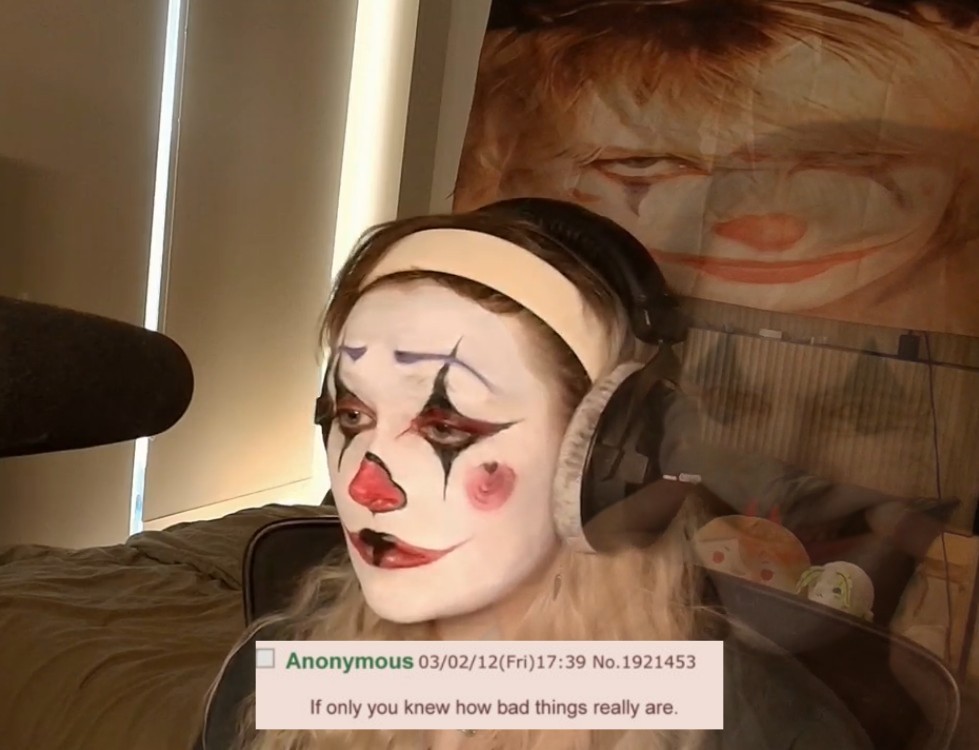 >>111082577She is actually very pretty here, she should become a Juggalo or something