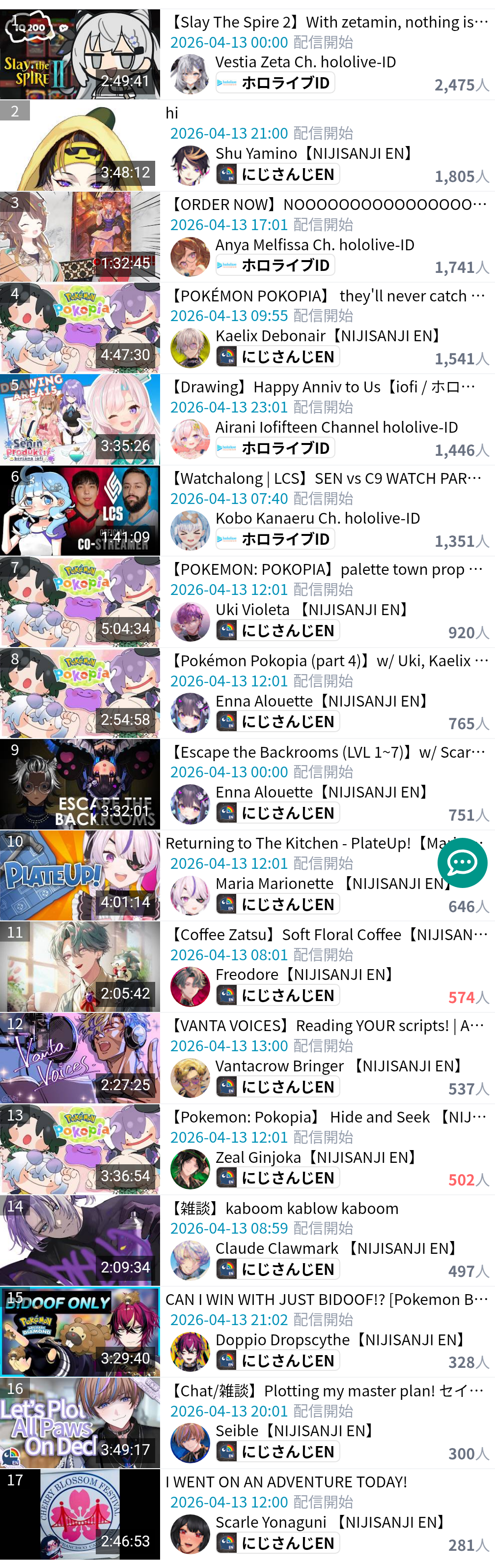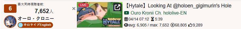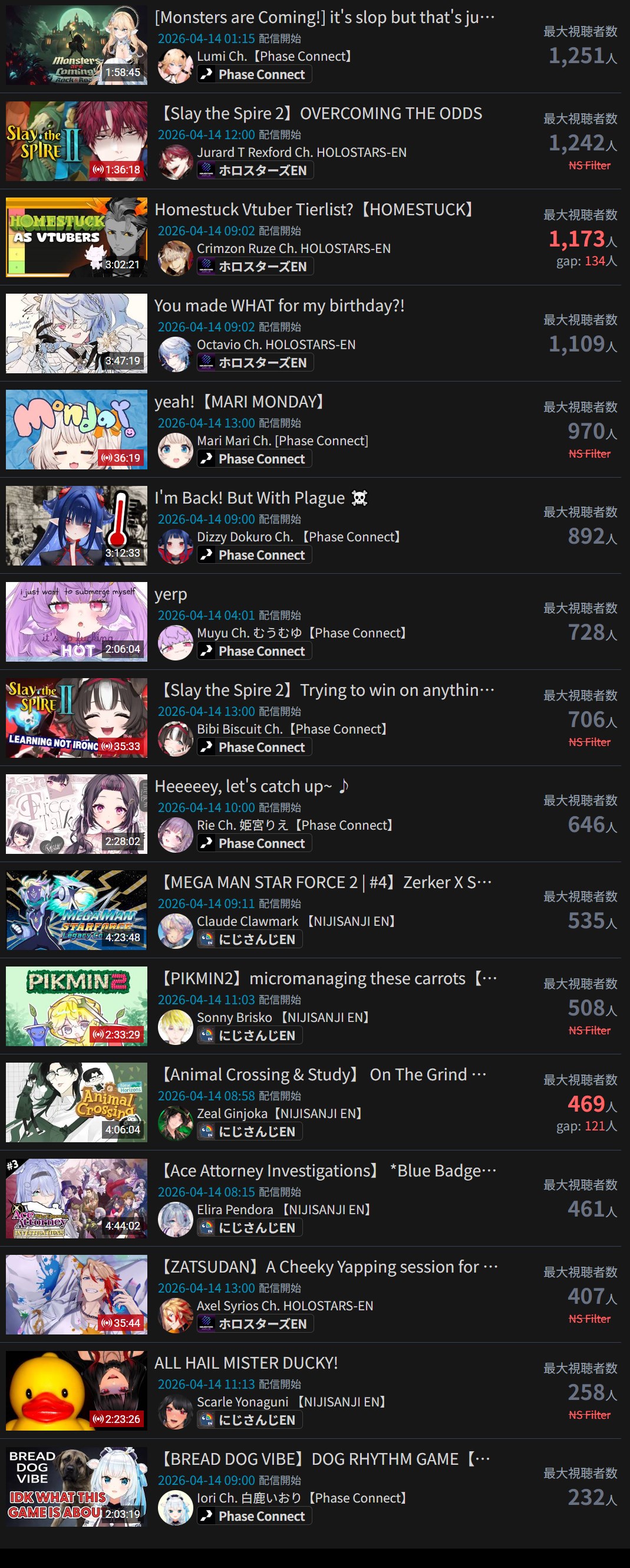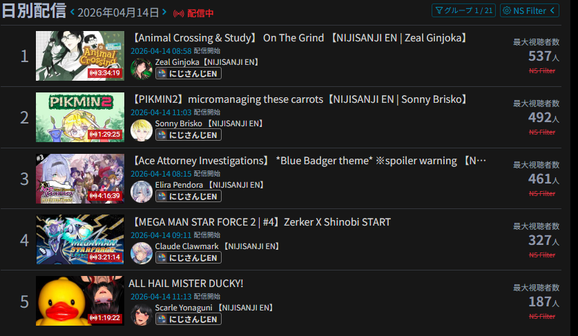 every single NijiEN stream today so far is sub-500 ccv. Zeal Z'd above 500 but his actual peak is 469.