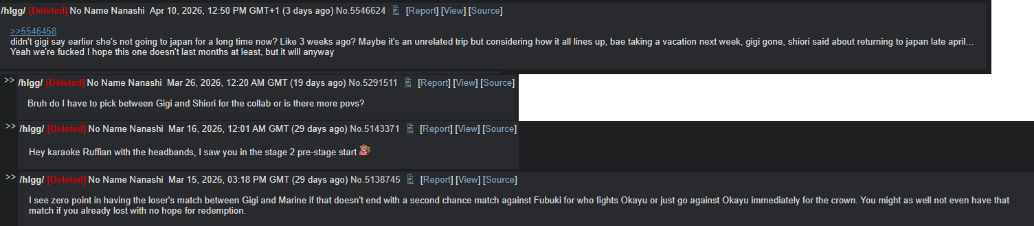 I wonder what would happen if someone actually sent a big supa complaining about gigi's behavior. Surely her mental would go boom and she'd stop. Holo members aren't exactly known for being good at dealing with criticism.