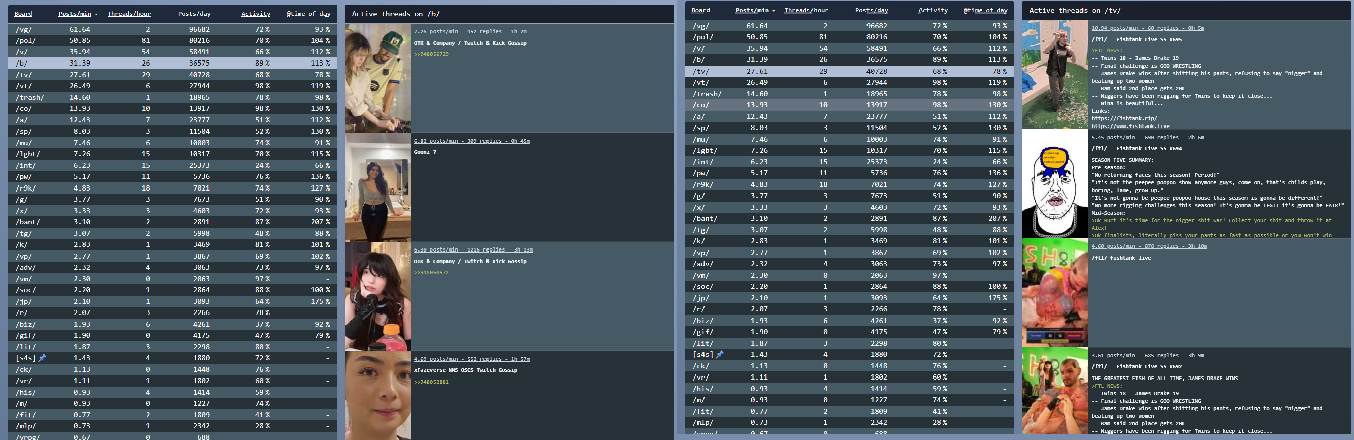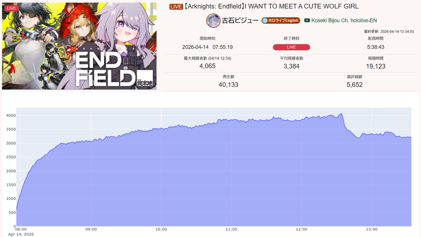 >>111083456*GENERAL NUMBERFAG SITES*>https://playboard.co/en/>http://ikioi-ranking.com/>https://vrabi.net/>https://www.vstats.jp>https://live-ranking.userlocal.jp/vtuber-ranking>https://vt.poi.cat/Hololive sites>https://www.hololyzer.net/youtube/index.html>https://trackholo.live/en/>https://holo-spotify-stats.jirikunes.eu/Twitch sites>https://sullygnome.com/>https://twitchtracker.com/>https://stats.roki.sh/>https://streamscharts.com/