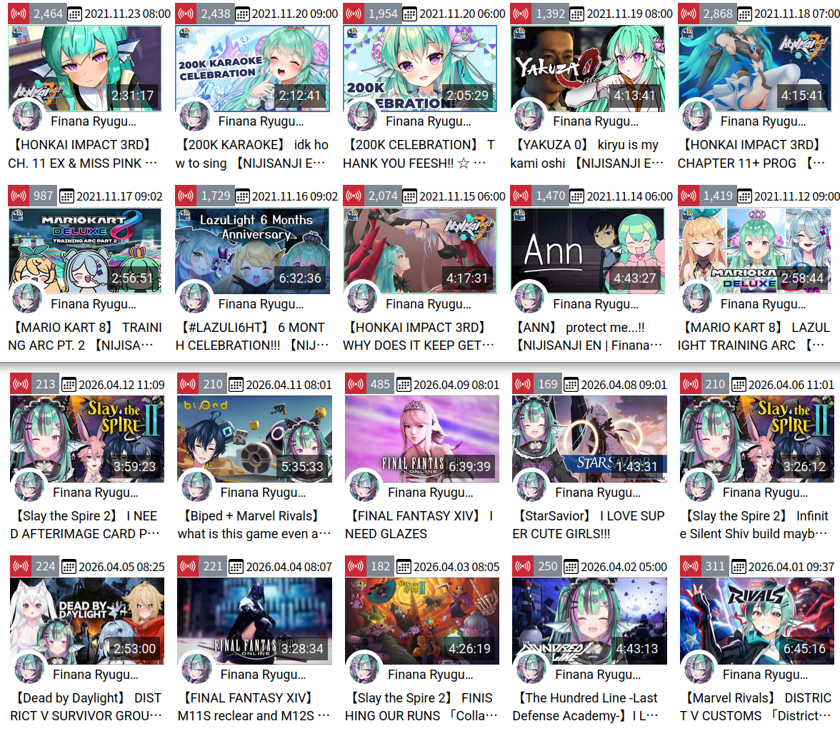 >>111083456MAR 2026 GOLD>1) 52,306: Akairo Mia (Brave Group) NEWTOWN clipshow [24]>2) 81,490: Nene (hololive) 3D Live Birthday [19]>3) 40,481: Miko (hololive) Biohazard requiem FINALE [21]>4) 66,856: Miko (hololive) gyakutotsu in Live2D [15]>5) 169,066: Miko (hololive) 3D LIVE Birthday [14]>6) 64,838: Hololive (hololive) holofes STAGE1 DAY1 free part [13]>7) 56,710: Hololive (hololive) holofes STAGE3 DAY2 free part [18]>8) 108,227: Kuzuha (nijisanji) kanji de GO! + announcement [22]>9) 46,398: Elu (nijisanji) Niji Apex fes 2026 team & rules announcement [23]>10) 45,512: Marine (hololive) Mario Tennis Cup [23]>11) 70,976: Pekora (hololive) Holo Mario Tennis Cup matchups [17]>12) 45,192: Okayu (hololive) Mario Tennis totsumachi [18]>13) 42,696: Subaru (hololive) Mario Tennis practice totsumachi [22]>14) 46,807: Kronii (hololive) 3D Birthday Live + New Outfit [24]>15) 184,450: Pekora (hololive) Hololive Mario Tennis Cup [21]>16) 43,711: Pekora (hololive) Hololive Mario Tennis Cup clipshow [18]>17) 72,610: Shellin Burgundy (nijisanji) 8th niji mario kart tournament [15]>18) 38,736: Popo (774 inc) NEWTOWN lookback [18]>19) 34,145: Subaru (hololive) Subaru's Cabin ft. Hajime [14]>20) 158,104: Lunlun (nijisanji) 3D reveal [22]>21) 109,611: VSPO (VSPO) VSPO! SHOWDOWN 2026 DAY1 [22]>22) 155,694: Suisei (hololive) 8th anniversary LIVE [25]>23) 49,321: Lize (nijisanji) NijiPoke1on1 [15]>24) 57,462: Subaru (hololive) SubaOka watching hololive official videos [22]>25) 44,327: Miko (hololive) Nenechi Mikochi [20]>26) 37,002: Shigure Ui (indie) stream ends when Watame tweets [19]>27) 41,934: Miko (hololive) Pokemon FireRed FINALE [20]>28) 73,460: Koyori (hololive) 3D LIVE new 3D + important announcement [28]>29) 122,348: Subaru (hololive) 7th anniversary 3D LIVE [25]>30) 20,454: Fuwamoco (hololive) LEAGUE OF LEGENDS [9]>31) 87,811: Miko (hololive) fake fuwawa audition [18]> PER COMPANY1x: Brave Group22x: hololive5x: nijisanji1x: 774 inc1x: VSPO1x: indie> PER STREAMER6x: Miko4x: Subaru3x: Pekora2x: Hololive1x: Akairo Mia, Nene, Kuzuha, Elu, Marine, Okayu, Kronii, Shellin Burgundy, Popo, Lunlun, VSPO, Suisei, Lize, Shigure Ui, Koyori, Fuwamoco