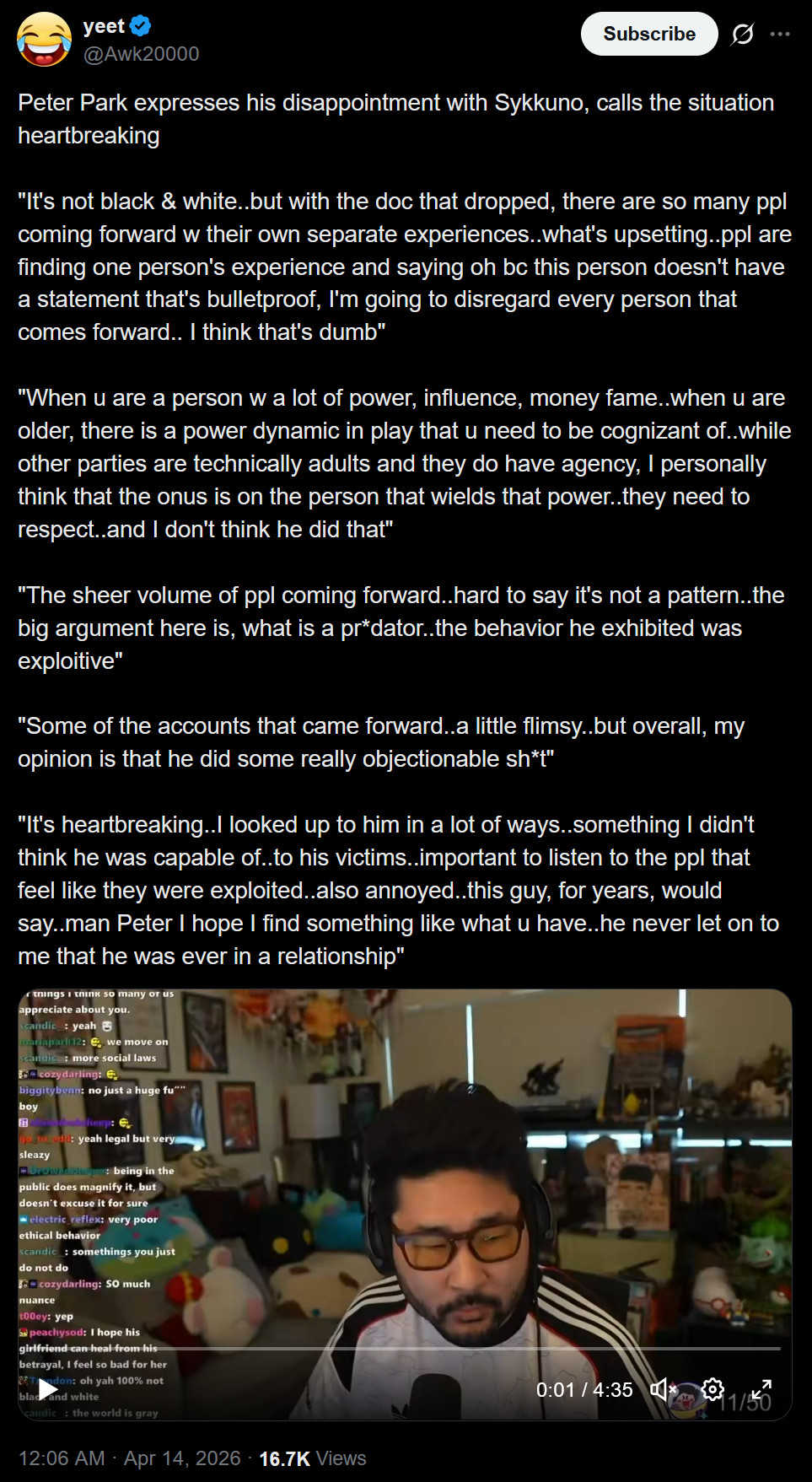 Peter is one of the worst clout chasers of that entire circle and would have sold Sykkuno and his girlfriend out in a second for a crumb of attention