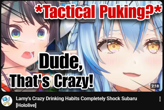 Lamy drinks enough to reach the point where the shaking stops and the headache disappears, Gura drinks until she blacks out, forgets how bad it felt and starts from the beginning.