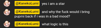 >>111095065>Says pippa needs to kill herself because of males>But it's fine when Lumi does itOkay Fyrenbro.