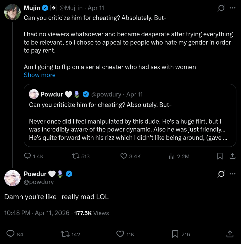 >>111100754So Mujin posts here right? Why else would he be seething about her BBC and thinks anyone outside of here would care
