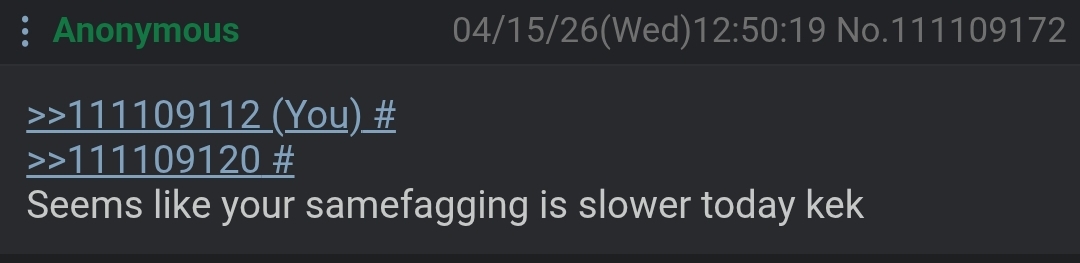 Seems like your samefagging is slower today kek