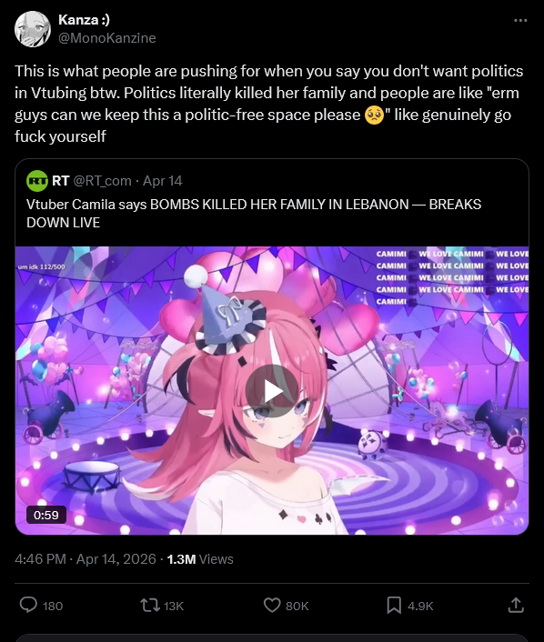 I still don't understand why Camila's family was hanging around with children, did she explain that on stream? If you know your neighbors are children and there is currently a war being fought in the region to kill em all why would you not just leave before the bombs inevitably drop
