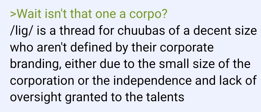 CCP Edition>What is /lig/?/lig/ is a thread for viewers to find, share, and discuss indie vtubers who have on average 500 viewers or more.>Why /lig/?Large indie vtubers have more net fans, but they are outnumbered by 2views by the thousands. This is a thread for the VIP, regardless of what language they stream on.>Can I shill my 499view oshi here?Considering averages fluctuate widely, all the way down to 100 is reasonable. The minimal requirement however is being Twitch partner or the YouTube equivalent in numbers.>Wait isn't that one a corpo?/lig/ is a thread for chuubas of a decent size who aren't defined by their corporate branding, either due to the small size of the corporation or the independence and lack of oversight granted to the talents>/lig/ Numbershttps://lignumbers.neocities.org/>Twitch Clips Guidehttps://pastelink.net/34vd5>VOD Archival Guidehttps://rentry.org/Vod_Archival_Guide>/lig/ VOD Archivehttps://rentry.org/Indie_Vod_Archives_lig_>Koikatsu cardshttps://mega.nz/folder/JYtkXJwL#07gAQCQqI_9FsmX9oQJKSA>/lig/ Wheel of Nameshttps://wheelofnames.com/5jh-93j>Tiermakerhttps://tiermaker.com/create/-lig--16586688-3>/lig/ Chuuba Birthday Calendar (WIP)https://www.canva.com/design/DAE-XgWodVg/ofLz4QC1yPPQ4T6TTAE0fw/edit?utm_content=DAE-XgWodVg>Upcoming BirthdaysApril 18th - SarueiApril 19th - Yoclesh & ZumaApril 23rd - Coqui & Limealicious & MomotexxApril 24th - Sugi AokiApril 27th - Peach MilkyMay 3rd - CharlottexBearMay 4th - Dya Rikku & ImakuniMay 6th - Nino EgynMay 14th - Peo YukinoshitaMay 17th - GrimmiMay 20th - Zentreya>OC material for the OPhttps://mega.nz/folder/IIVD1IaJ#cfsRhWdJvzneIoG8HZUPuw>/lig/booruhttps://ligbooru.moe/>Duckshttps://www.twitch.tv/dashducks (embed) (embed) (embed) (embed) (embed) (embed)Other useful threads:>>>/vt//big/>>>/vt//corpo/>>>/vt//choc/>>>/vt//flip/>>>/vt//haha/>>>/vt//indie/>>>/vt//mint/>>>/vt//swarm/>>>/vt//vrt/>>>/vt//xvsj+/Previous Thread: >>111127998