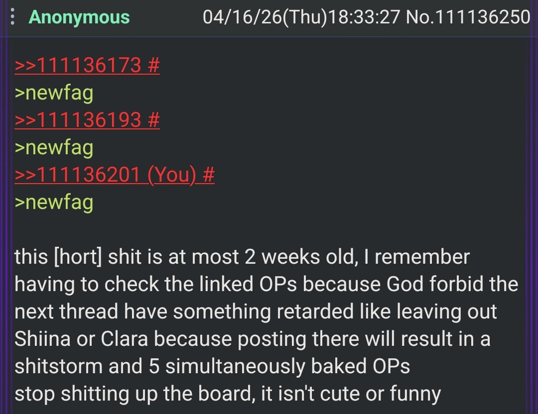 >>111139689I don't know if you're a newfag or just retarded