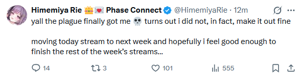 >>111136313I know you're joking but it would be nice if she went live. I don't know what's going on with her but I hope she's ok.