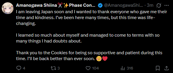 ▼ Phase Connect LinksOfficial Website: https://phase-connect.comOfficial Schedule: https://schedule.phase-connect.comOfficial Twitter: https://x.com/PhaseConnect | https://x.com/PhaseConnectJPOfficial Character References: https://rentry.org/pcgreferencesOfficial Twitch Archive Channels: https://rentry.org/pcgtwitcharchiveUnofficial Phase Connect Archives: https://rentry.org/pcgunofficialarchive––––––––––––––––––––––––––––––––––◆【Lia】https://x.com/rinkouashelia | https://youtube.com/RinkouAshelia | https://twitch.tv/asheliarinkou◆【Utatane Nasa】転寝ナサ (JP) https://x.com/UtataneNasa | https://youtube.com/UtataneNasa | https://twitch.tv/utatanenasa◆【Hakushika Iori】白鹿いおり (JP + EN) https://x.com/hakushikaiori | https://youtube.com/HakushikaIori | https://twitch.tv/iorihakushika◆【Fujikura Uruka】https://x.com/fujikurauruka | https://youtube.com/FujikuraUruka | https://twitch.tv/fujikurauruka◆【Shisui Michiru】紫翠みちる (JP) https://x.com/shisuimichiru | https://youtube.com/ShisuiMichiru | https://twitch.tv/michiru_shisui◆【Tenma Maemi】https://x.com/tenmamaemi | https://youtube.com/TenmaMaemi | https://twitch.tv/tenma◆【Pipkin Pippa】https://x.com/pipkinpippa | https://youtube.com/PipkinPippa | https://twitch.tv/pippa––––––––––––––––––––––––––––––––––◆【Kaneko Lumi】https://x.com/kaneko_lumi | https://youtube.com/KanekoLumi | https://twitch.tv/kanekolumi◆【Fuura Yuri】[Terminated] https://x.com/AmarisYuri | Archive: https://youtube.com/@TheNationalFuuraYuriArchive◆【Dizzy Dokuro】https://x.com/dizzydokuro | https://youtube.com/@dizzydokuro | https://twitch.tv/dizzydokuro◆【Jelly Hoshiumi】https://x.com/jellyhoshiumi | https://youtube.com/@jellyhoshiumi | https://twitch.tv/jellyhoshiumi◆【Ember Amane】https://x.com/emberamane | https://youtube.com/@EmberAmane | https://twitch.tv/emberamane◆【Clio Aite】https://x.com/ClioAite | https://youtube.com/@ClioAite | https://twitch.tv/clioaite◆【MariMari_en】https://x.com/MARIMARI_EN | https://youtube.com/@MARIMARI_EN | https://twitch.tv/marimari_en◆【Eepy Sleepy】https://x.com/EepySleepyCh | https://youtube.com/@EepySleepyCh | https://twitch.tv/EepySleepy––––––––––––––––––––––––––––––––––◆【Remilia Nephys】https://x.com/Remilia_Nephys | https://youtube.com/RemiliaNephys | https://twitch.tv/remilianephys◆【Chisaka Airi】https://x.com/ChisakaAiri | https://youtube.com/ChisakaAiri | https://twitch.tv/chisakaairi◆【Amanogawa Shiina】https://x.com/AmanogawaShiina | https://youtube.com/AmanogawaShiina | https://twitch.tv/amanogawashiina◆【Himemiya Rie】https://x.com/HimemiyaRie | https://youtube.com/HimemiyaRie | https://twitch.tv/himemiyarie◆【Erina Makina】https://x.com/ErinaMakina | https://youtube.com/ErinaMakina | https://twitch.tv/erinamakina◆【Komachi Panko】https://x.com/komachipanko | https://youtube.com/KomachiPanko | https://twitch.tv/komachipanko––––––––––––––––––––––––––––––––––◆【Runie Ruse】https://x.com/RunieRuse | https://youtube.com/@RunieRuse | https://twitch.tv/RunieRuse◆【Eimi Isami】https://x.com/eimiisami | https://youtube.com/@eimiisami | https://twitch.tv/eimiisami◆【Muu Muyu】https://x.com/Muu_Muyu | https://youtube.com/@MuuMuyu | https://twitch.tv/MuuMuyu◆【Hikanari Hina】https://x.com/HikanariHina | https://youtube.com/@HikanariHina | https://twitch.tv/HikanariHina◆【Saya Sairroxs】[Hort] https://x.com/sayasairroxs | https://youtube.com/@sayasairroxs | https://twitch.tv/sayasairroxs––––––––––––––––––––––––––––––––––◆【Kannagi Loki】巫ロキ (JP) https://x.com/kannagiloki | https://youtube.com/@kannagiloki◆【Kokoromo Memory】[Phase Citizen] https://x.com/kokoromomemory | https://youtube.com/@kokoromomemory_ | https://twitch.tv/kokoromomemory◆【Gram Pico】倉夢ぴこ (JP) https://x.com/grampico_ | https://youtube.com/@grampico | https://twitch.tv/grampico◆【Ayase Yuu】絢世ユウ (JP) https://x.com/ayaseyuuu | https://youtube.com/@ayaseyuu | https://twitch.tv/ayaseyuu_◆【Kaminari Clara】[Graduated] https://x.com/kaminariclara_ | https://youtube.com/@kaminariclara | https://twitch.tv/kaminariclara––––––––––––––––––––––––––––––––––◆【Malice Evermore】https://x.com/MaliceEvermore | https://youtube.com/@maliceevermore | https://twitch.tv/maliceevermore◆【Nitya Nil】https://x.com/Nitya_Nil | https://youtube.com/@Nitya_Nil | https://twitch.tv/nitya_nil◆【Wilhelmina Frost】https://x.com/wilhelminafr0st | https://youtube.com/@wilhelminafrost | https://twitch.tv/wilhelminafrost◆【Bibi Biscuit】https://x.com/BibiBiscuitCh | https://youtube.com/@bibibiscuitch | https://twitch.tv/bibibiscuitch◆【Anya Nyabyss】https://x.com/AnyaNyabyss | https://youtube.com/@AnyaNyabyss | https://twitch.tv/anyanyabyss◆【Sinon Sinfonia】https://x.com/SinonSinfonia | https://youtube.com/@SinonSinfonia | https://twitch.tv/sinonsinfoniaPrevious Thread: >>111135809