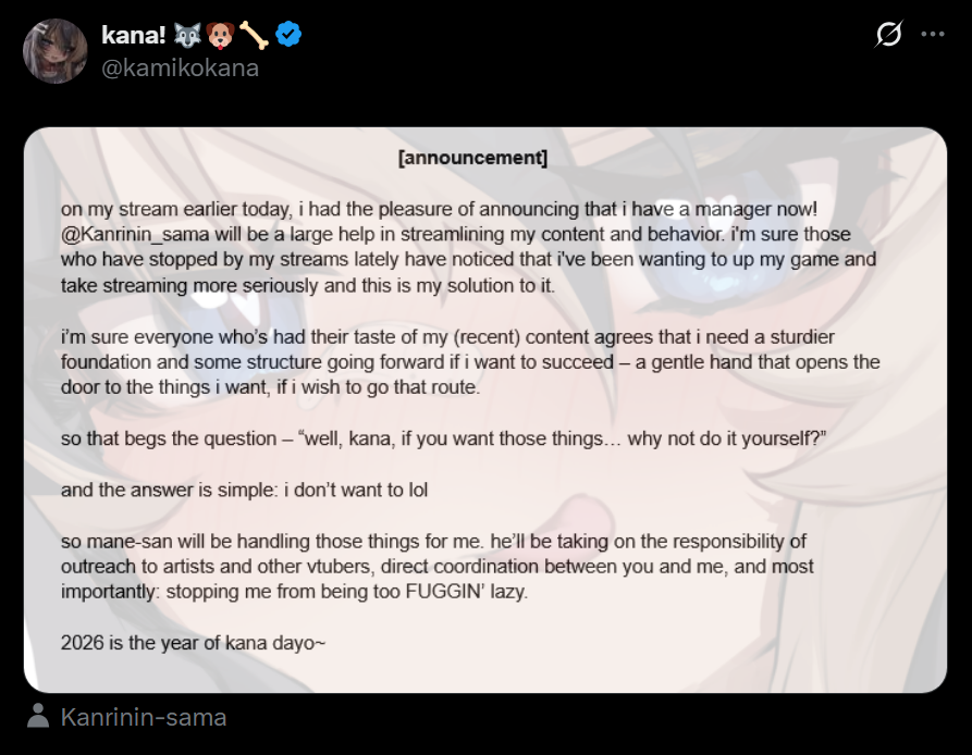 Miia needs a manager to keep her streams on trackI volunteer.