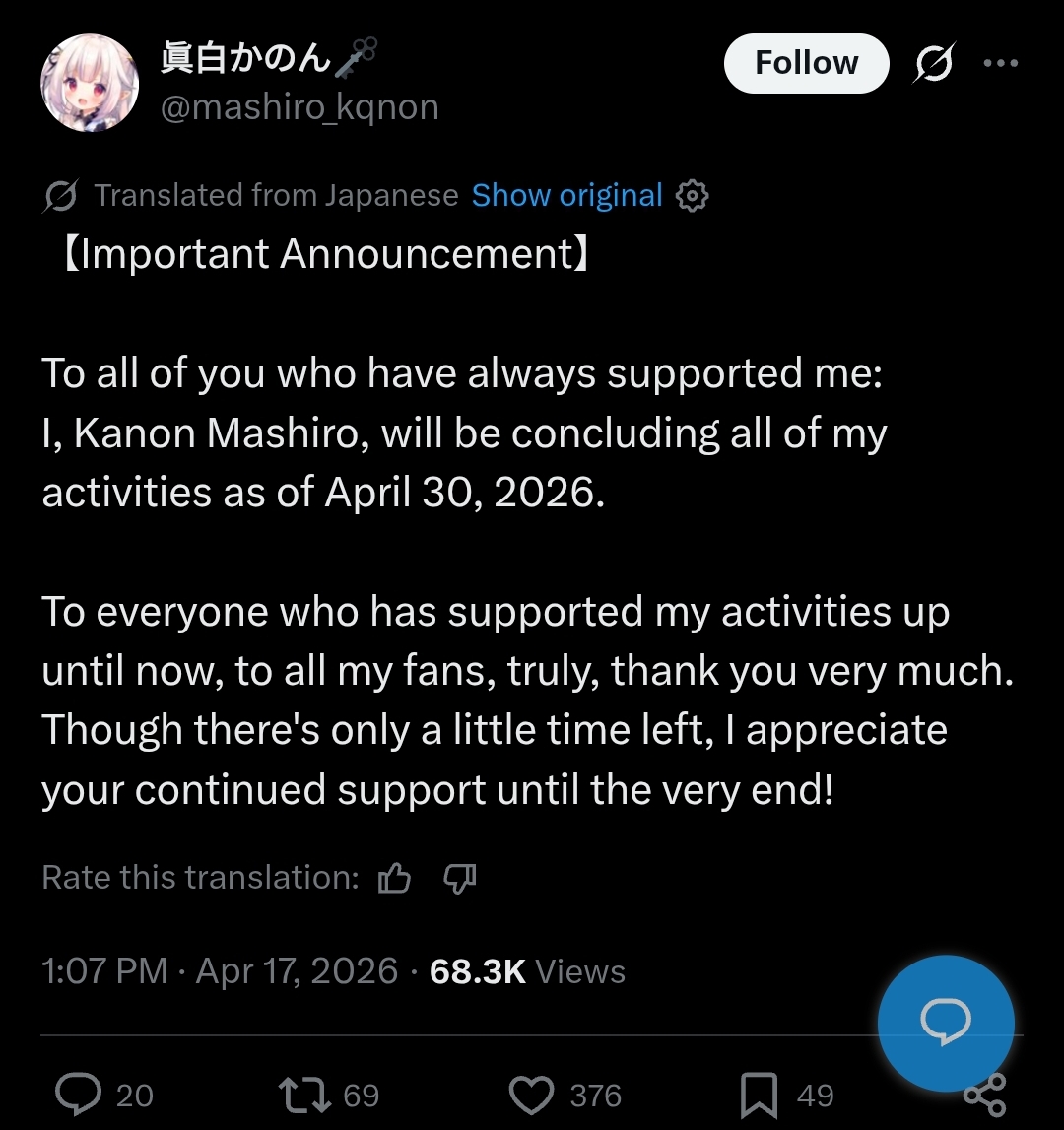 >>111156308There's no way that such a contract would have a prohibition against revealing marital status that lasted longer than a prohibition against independent vtuber activities.