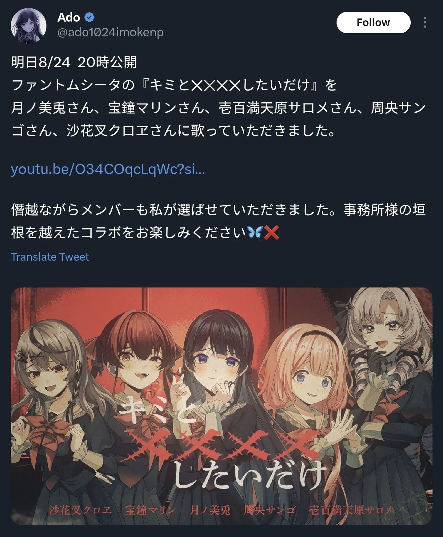 https://www.youtube.com/live/aMojzTRVbJMERB with her new song btw