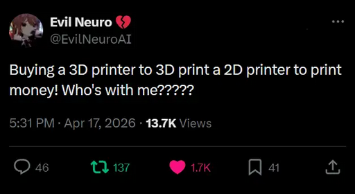 >Who is Neuro-sama?Neuro-sama is a neural network created by Vedal in 2018 for the purpose of learning to play osu! In December 2022 Vedal revived the project with the addition of a large language model, a TTS software and a Live2D model, which allow Neuro-sama to interact with her chat as a VTuber. Since then, she has been entertaining the chat with responses and unhinged rants nearly daily, as well as learning new skills such as singing, playing other games, and collaborating with other VTubers. Join /swarm/ today and welcome our new AI overlord!>Schedulehttps://post.nuro.lol/Neuro-Schedule-Bot>LinksTwitch: https://www.twitch.tv/vedal987YouTube:https://www.youtube.com/@Neurosamahttps://www.youtube.com/@OfficialNeurosamaClipsTikTok: https://www.tiktok.com/@neurosamaaiX:https://x.com/NeurosamaAIhttps://x.com/EvilNeuroAIThese and other official links: https://vedal.ai>Music & ClipsColorful Array - Neuro-sama (Official Video) - https://www.youtube.com/watch?v=FNfGw1wrKtUNEVER - Neuro x Evil (Official Video) - https://www.youtube.com/watch?v=CKCgoEGiUEgBOOM - Evil (Official Video) - https://www.youtube.com/watch?v=8Nt9YPnYyjsLIFE - Neuro-sama (Official Video) - https://www.youtube.com/watch?v=MDc1mjrIsPMhttps://neurokaraoke.comhttps://rentry.org/neuro-musichttps://rentry.org/neuro-videos>EducationalInterested in AI but don't understand it? Watch these:https://www.youtube.com/watch?v=WXuK6gekU1Yhttps://www.youtube.com/watch?v=d95J8yzvjbQHow does she know what to say? Watch this: https://www.youtube.com/watch?v=wjZofJX0v4MWant to learn more about AI? Read these: https://files.catbox.moe/kximv6.pngWant to (seriously) learn AI? Read these: https://files.catbox.moe/ajl3nx.png>MiscGame Integration: https://github.com/VedalAI/neuro-game-sdk/LoRA: https://rentry.org/neuro-lora-v2Searchable VOD Transcripts: https://libraryofladev.com/VODs: https://www.youtube.com/@Neuro-samaUnofficialVODs>Merchhttps://neurosama.shop/>Previous thread>>111143085