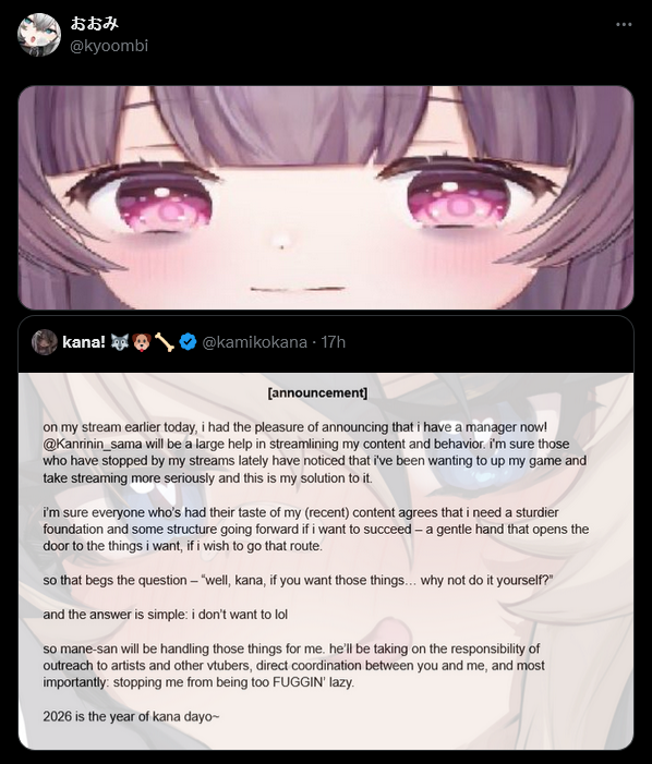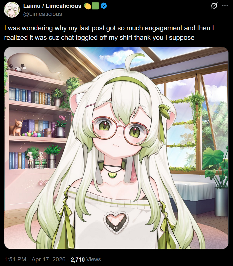 Large indie vtubers have more net fans, but they are outnumbered by 2views by the thousands. This is a thread for the VIP, regardless of what language they stream on.
