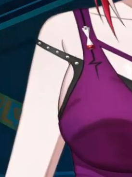 The metal whatever on her top look like they're holes showing off her innerboob.
