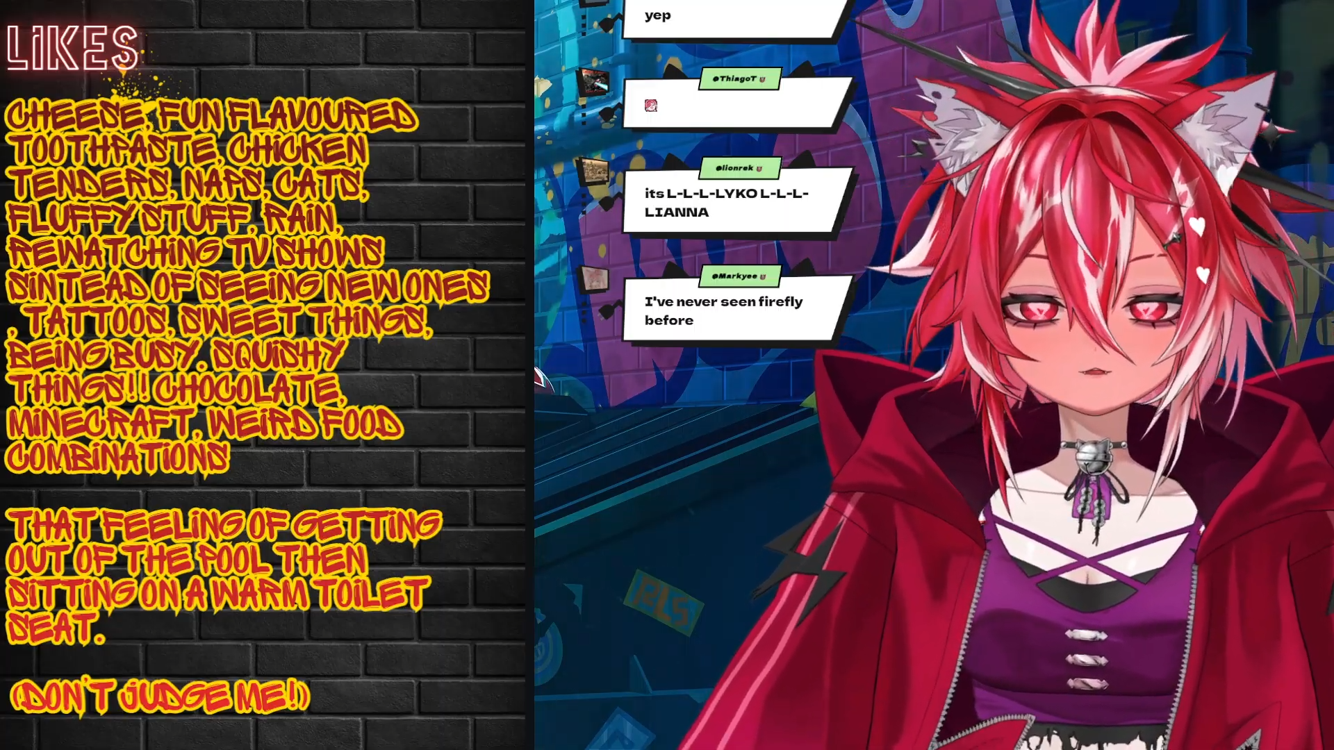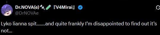 >Agent Harvarti reporting.The rogue elemement Lyko.exe has been found, and extracted from [V4 Mirai] during one of her 'live streams' a habit she picked up on during her stay in the supposed academy. An X-ray of the entity known as Lyko show that the entity now inhabits a near humanoid body. With biomechanical interior. Not entirely human, but functions very similarly to one. Including the desire to eat and sleep. Brain scans show there may be some malfunctions with this. As Lyko.EXE has exhibited...odd tastes.Further testing is required to see if we can reign in the entity once more. It is suggested she immedietly be placed into Protocol REDO.-Harvarti Out.
