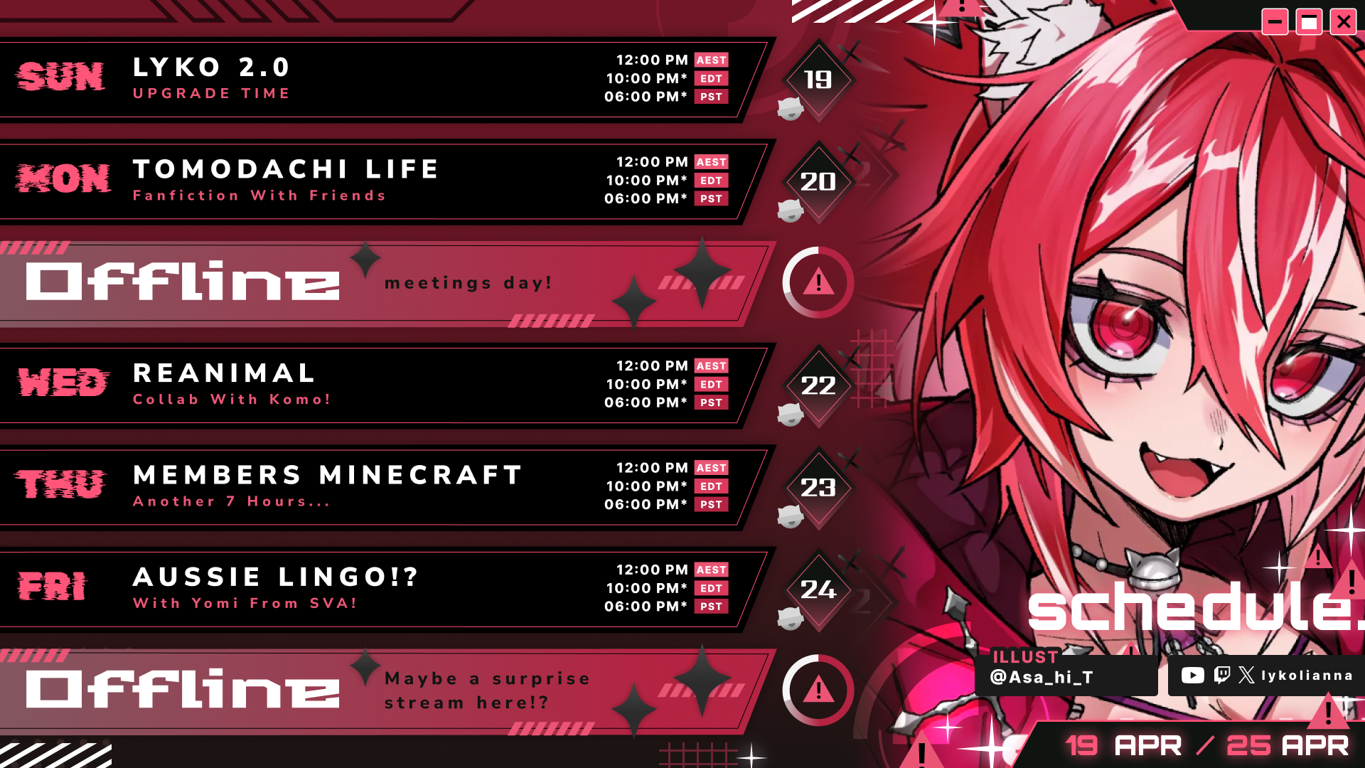 Licko schedule (from Discord)