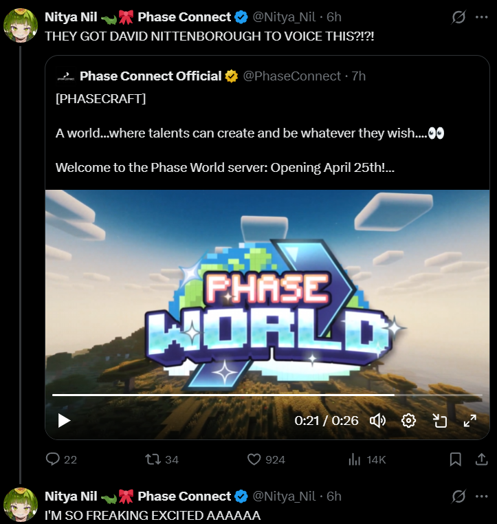 [PHASECRAFT]>A world...where talents can create and be whatever they wish....>Welcome to the Phase World server: Opening April 25th!Phase post:https://x.com/PhaseConnect/status/2045602102123122930