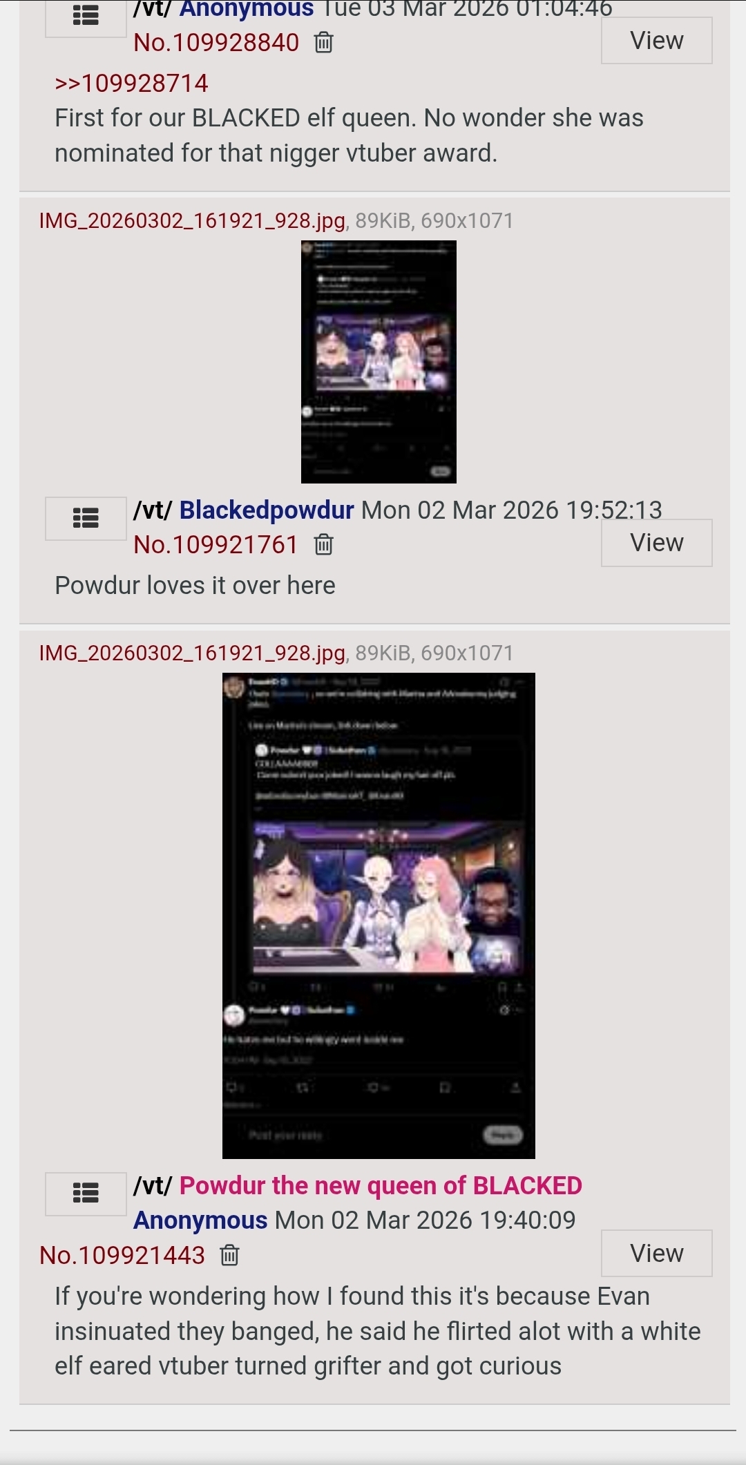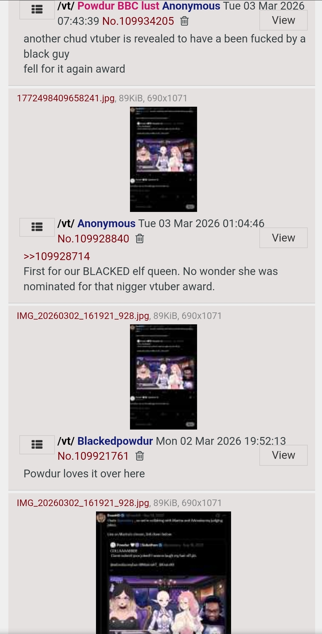 >>111213337>how you're against racismI don't know why you assume that; I am a racist>declaring race mixing evilI don't think it's evil, but I look at people who do it in the same way I look at drug addicts>only to pwn the chudsIt's such a retarded term but it's something I've been called many times on this boardYou should improve your reading comprehension; the Powdur fan I was talking with at the time understood me but clearly you're a bit more retarded. I was taking issue with that anon's characterisation of the race mixing criticism as parasocial, pointing out that that it's more a question of authenticity rather than parasocialism. It wasn't about Powdur specifically but about content creators in general. Rather than working yourself up over enemies you've invented in your head you should take a step back and actually read what you're responding tom