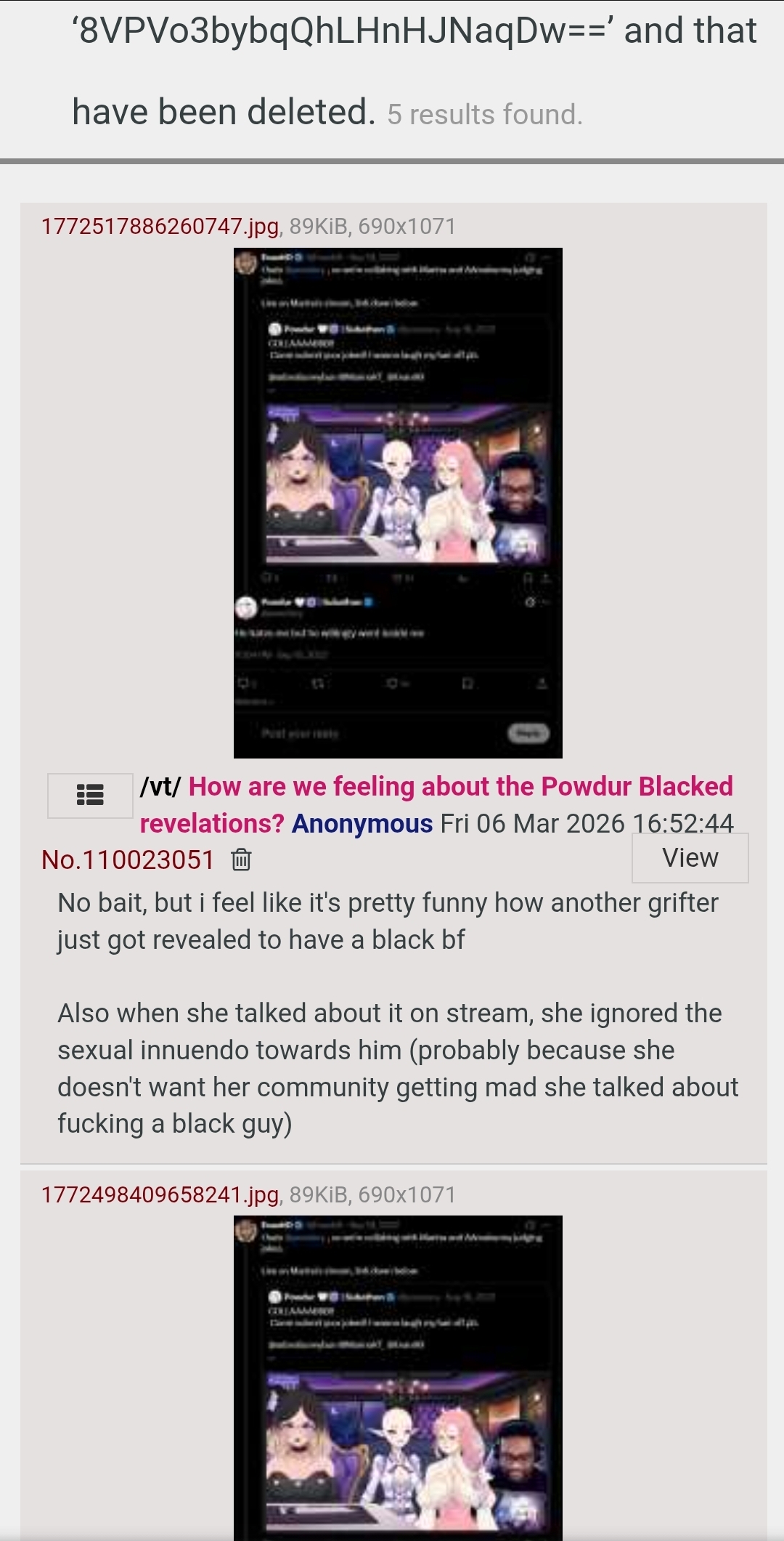 >>111202312>do it again, three years is a lot of time for most peopleYeah, fat fucking chance. They're at their core awful people and even now Powdur only makes money by farming drama and dragging people into her shit.