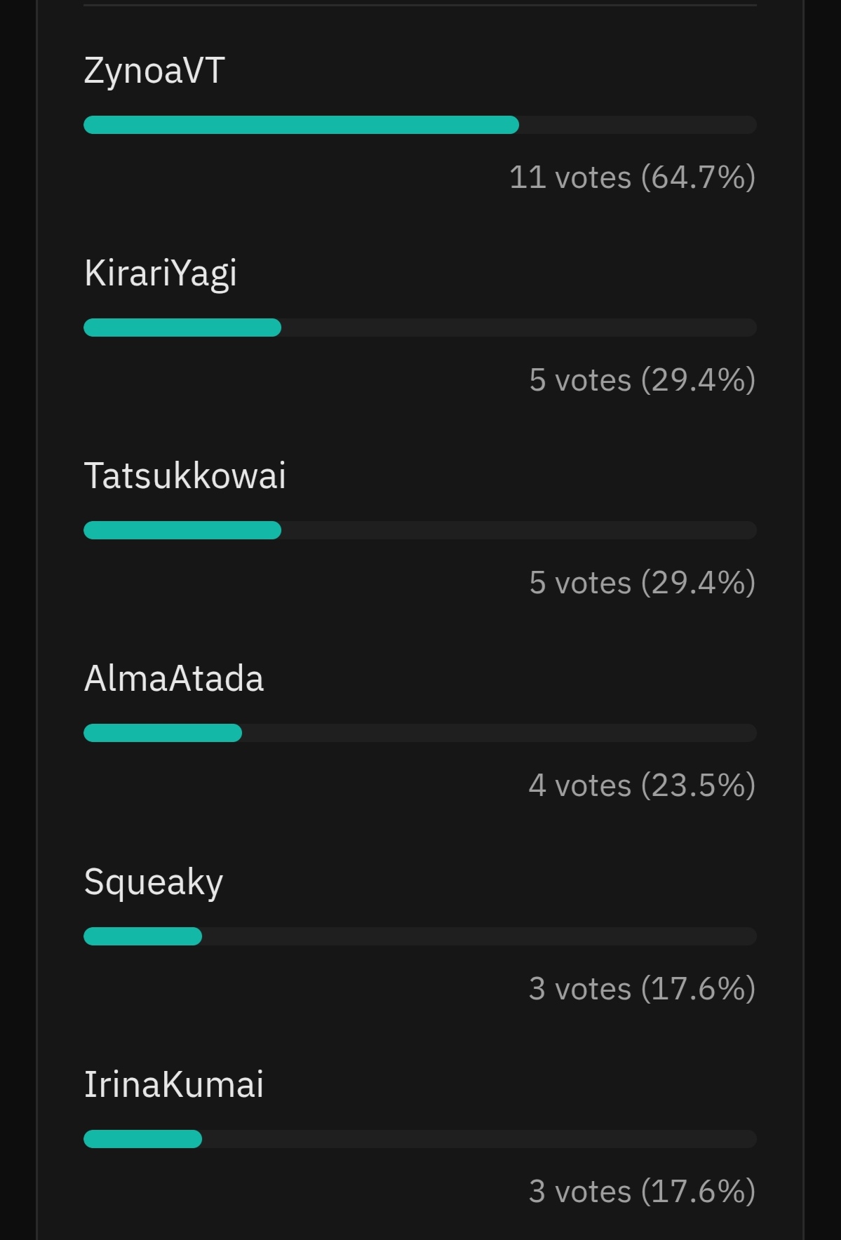 Latest one dropped!https://poll.msgk.moe/p/z49Jo50