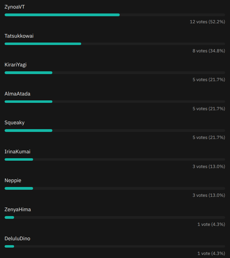 Post and discuss your favourite /uoh/ vtubers, from the largest corpos to the smallest indies.Previous: >>111100236Remember to report shitposting, trolling, and offtopic.