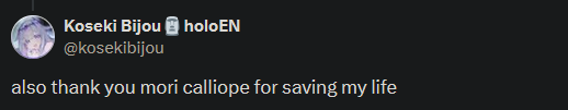 >>111180637if I had a nickel for every time Mori helped out a Holo in middle of the night, I'd have two nickelswhich isn't much, but I'm glad it had to happen only two times