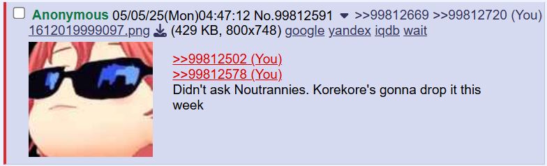 >>111178127I'll give you the (You) just so I can mock Roberu's living cumsock, Bae