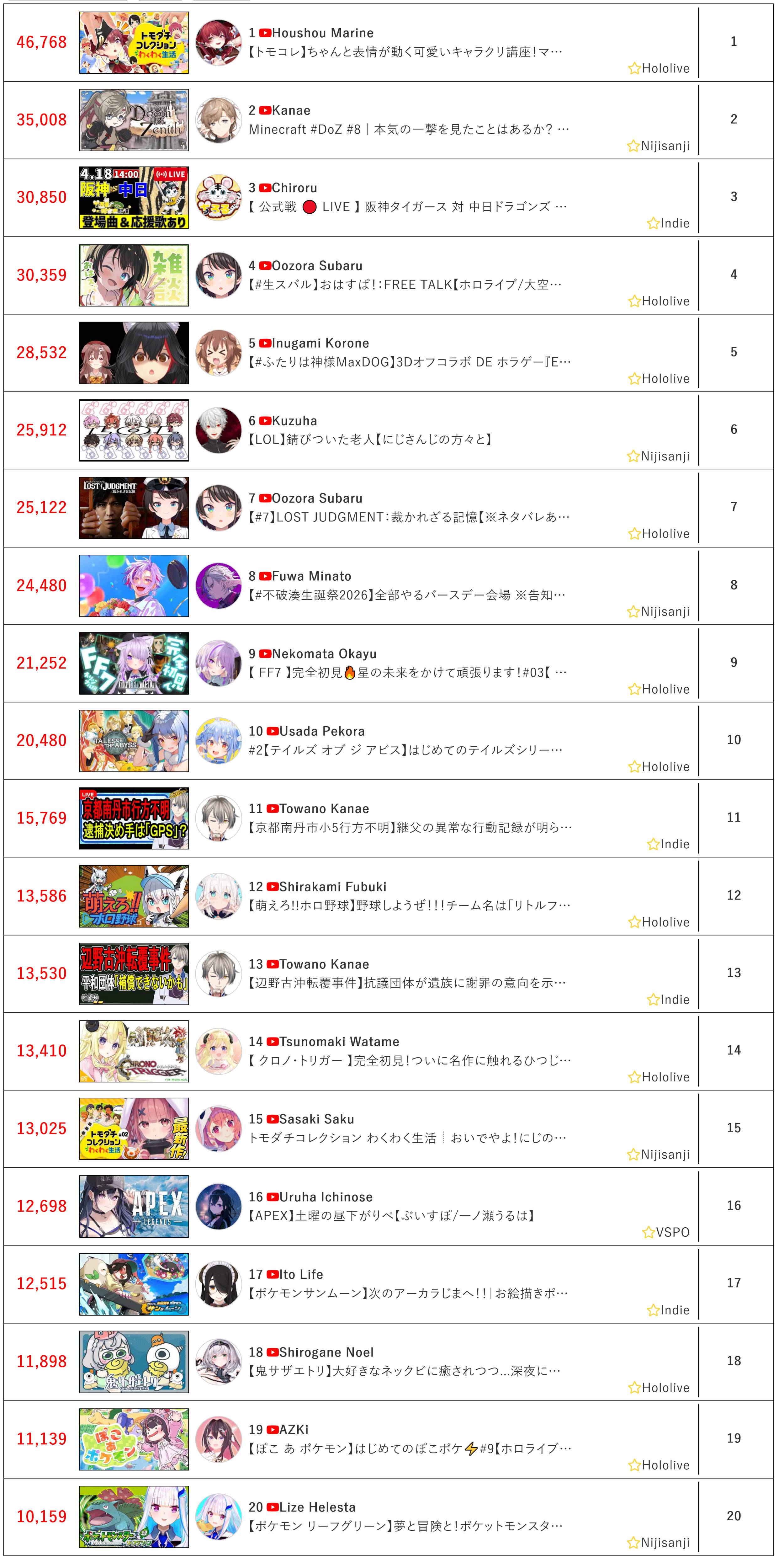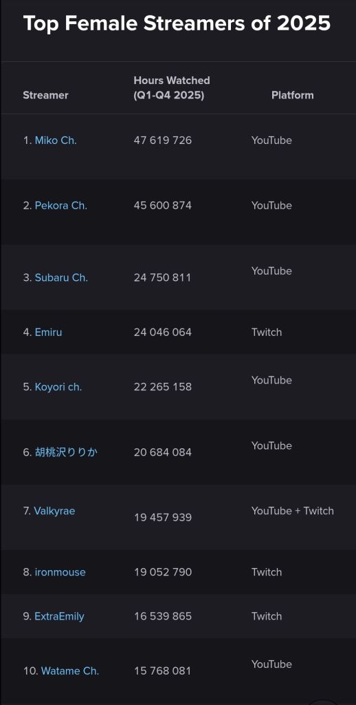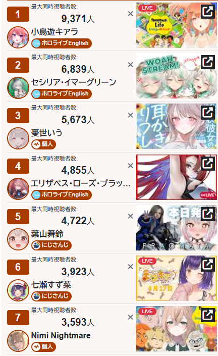 >#1 girl in NijiEN>under 10k views per vod