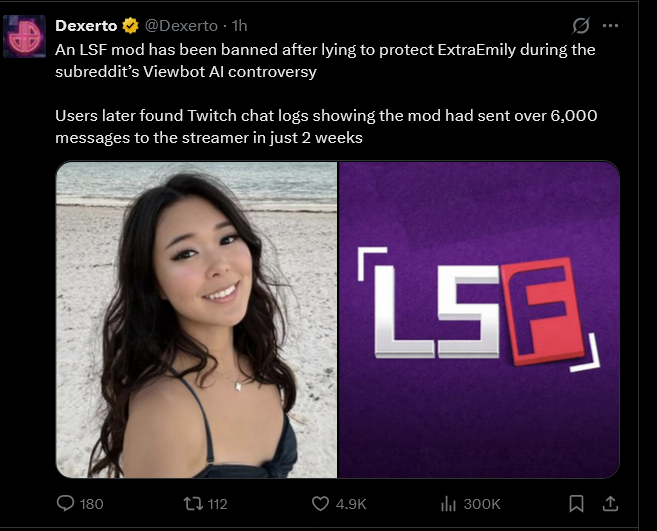 >>111183010tldr mod was a fan and deleted post to defend the streamer