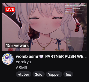 >>111186305go to twitch.tv, use the vtuber tag, sort by views, then scroll for 4 minutes