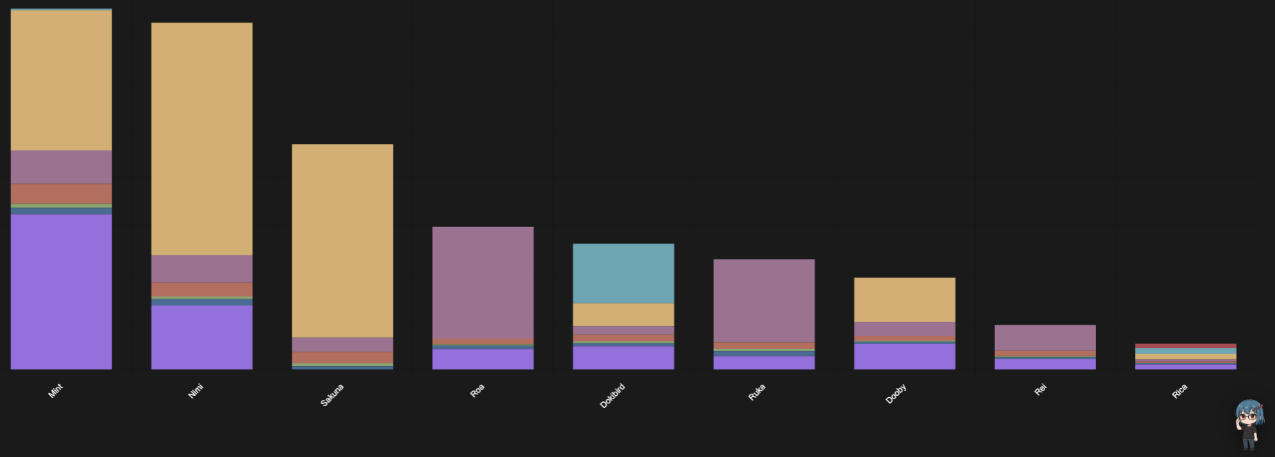 >>111183903when you take the gifted memberships away, it's nimi at 825 and irys at 705.
