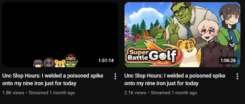 >>111188515The almost weekly Advent ones also dont really make much sense to me. I know they say they are all really close off-stream and shit but words are words. They had some fun streams when they first started but now they find some slop to play for 2 hours and always hard cut, usually due to Nerissa.