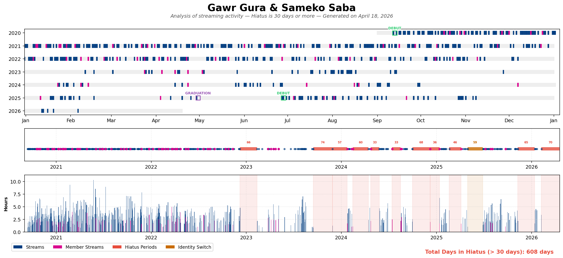 >>111184156APR 2026 EN SILVER4/1 - Gigi - Unarchived Karaoke: 8,7624/2 - Cecilia - Immergold Debut: 10,3874/3 - Kronii - The Cabin Factory: 10,8564/4 - FUWAMOCO - Chrono Trigger: 7,8844/5 - FUWAMOCO - Waterpark Simulator: 10,9074/6 - Kiara - Hytale: 8,5944/7 - Bijou - Super Mario Sunshine: 11,7124/8 - Gigi - Hytale: 9,4024/9 - Gigi - The Elder Scrolls IV Oblivion Remastered: 6,1124/10 - Gigi - Fortnite: 8,2044/11 - Gigi - Hytale: 8,2584/12 - Cecilia - Spider Man: 10,0184/13 - Baelz - My Voice Zoo: 6,5904/14 - Calliope - Dark Souls Remastered: 6,3504/15 - Kronii - House Flipper 2: 7,9034/16 - Bijou - Tomodachi Life: 8,3794/17 - Bijou - Tomodachi Life: 10,4714/18 - Nimi - Tomodachi Life: 6,761PER COMPANY17x: Hololive English1x: IndieNOOOOOOOOOO MY SILVER SWEEPPER STREAMER5x: Gigi2x: [FUWAMOCO, Bijou], Cecilia, Kronii1x: Baelz, [Calliope, Kiara]GIGI MURIN BECOMES THE FIRST TALENT IN THE HISTORY OF THE EN TALLY TO WIN FOUR SILVERS IN A ROW.