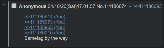 >>111188574>>111188548im not on this board enough to know wtf this means