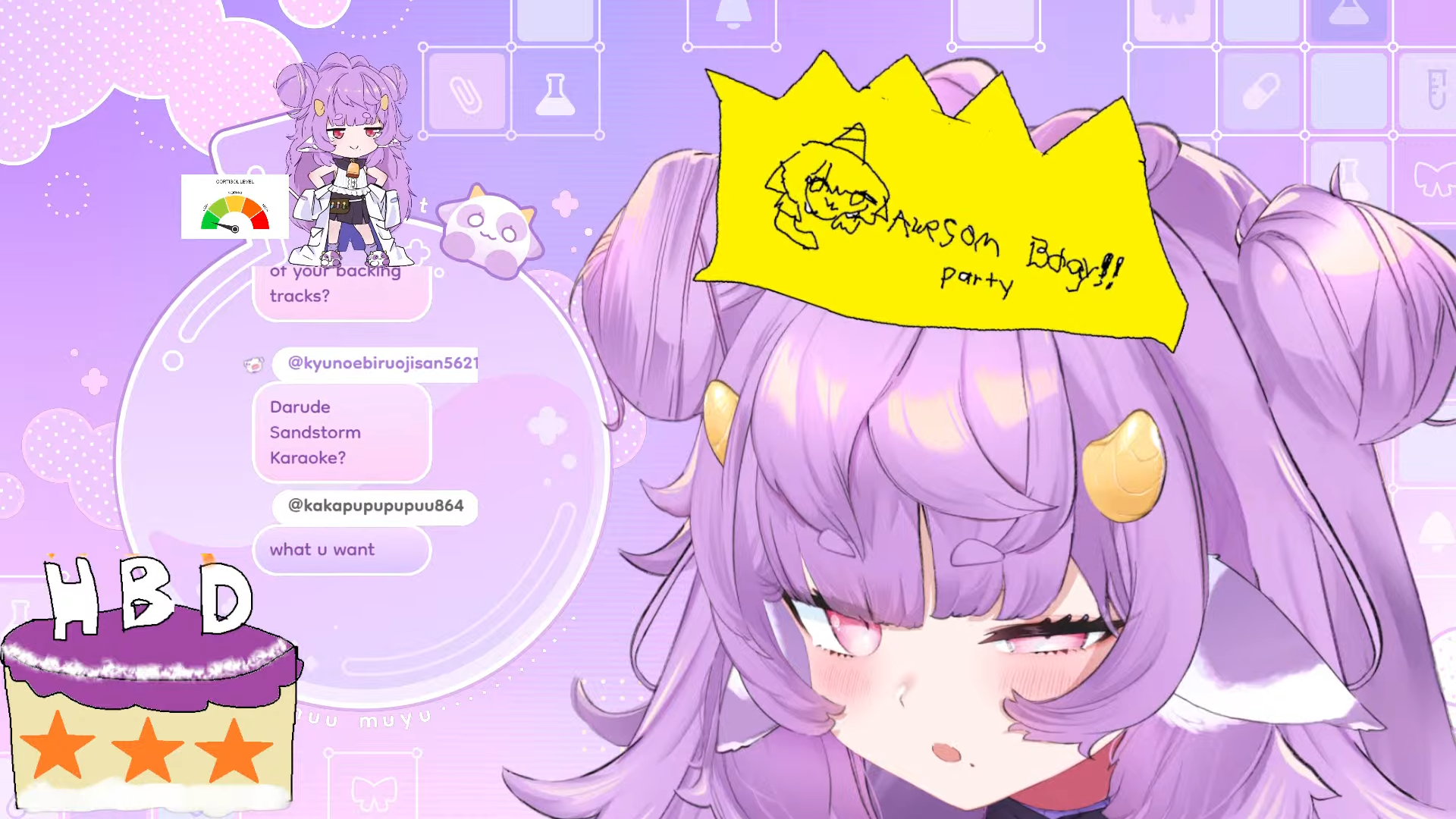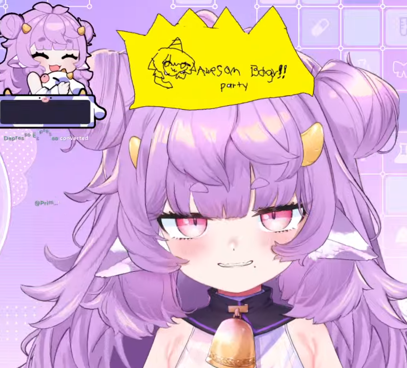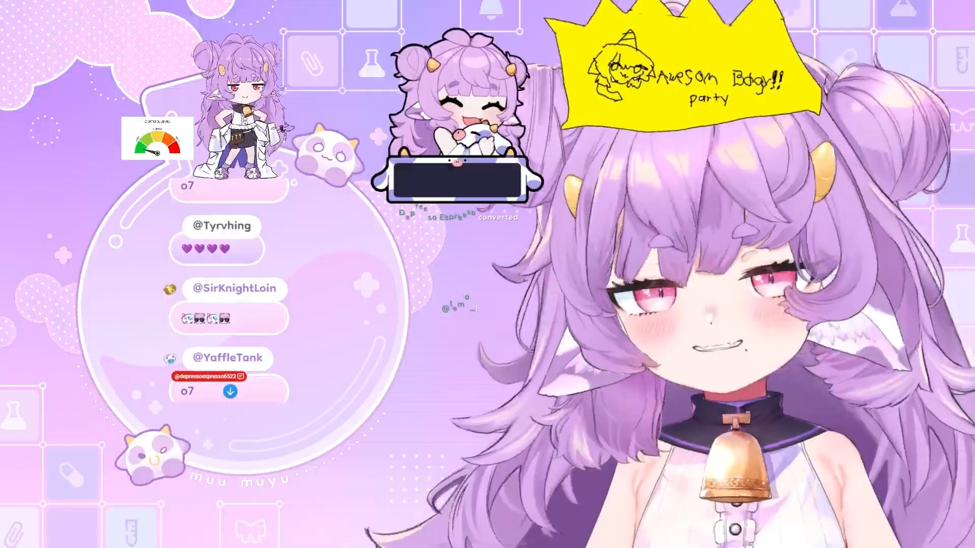 it says AWESOME BODY PARTY on muyu's crown