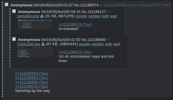 >>111188755Schizobaker lost and is coping that the thread decided to stop his saya antiing