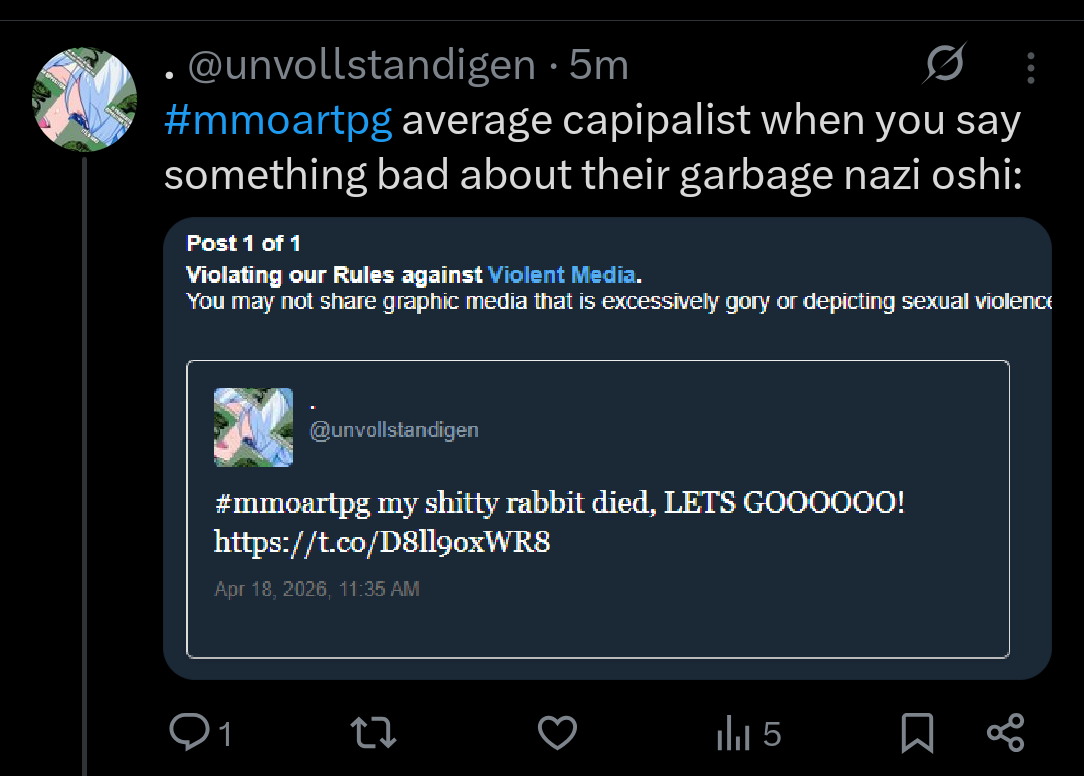 >>111186356>see yourself lose relevance in thread>turn on streamLet Calfie get love, Pippa. Mourn your rabbit instead of crashing out for attention. Jfc