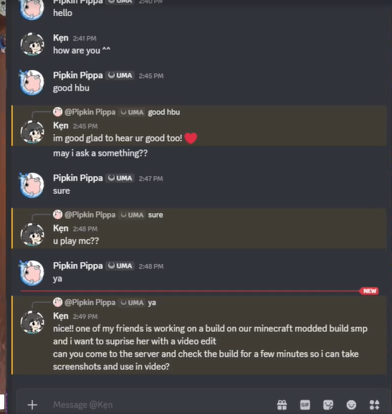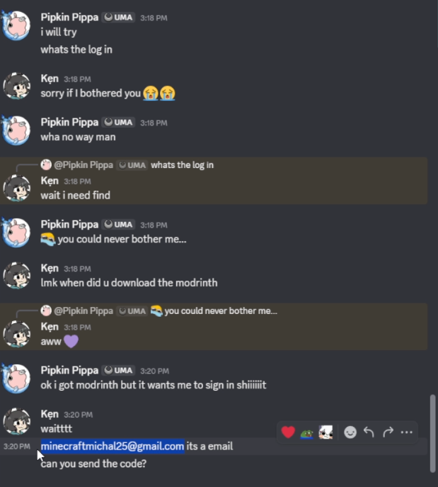 >>111188755a turkish man hacked ken ashcorps discord and has been trying to scam pippa into installing malware through minecraft mods, which unfolded live during an overwatch gorilla and he is now talking to her on discord still trying to convince her