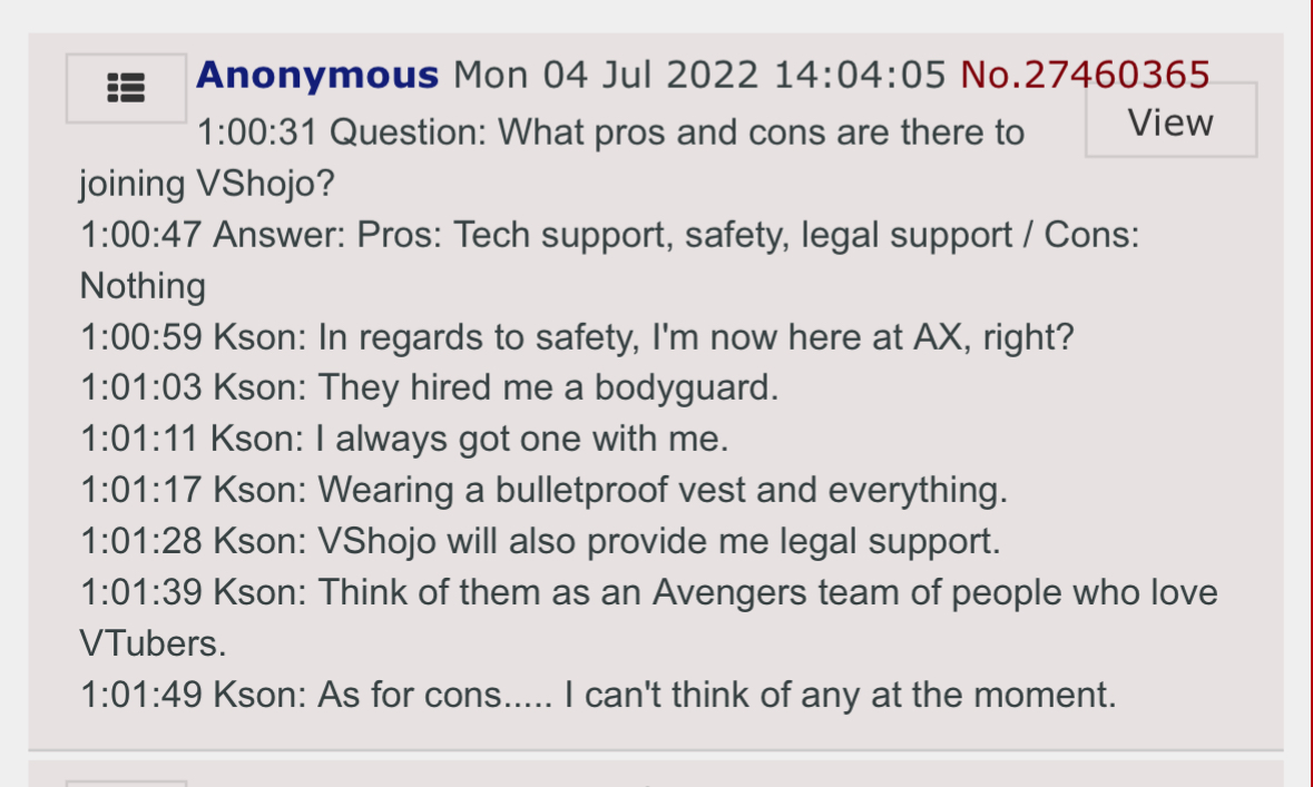>>111187249I know kson apologized for this shit but god her shilling back then was insufferable and the fallout just made everything worse. She had a huge drop off after her first few months going indie and although I was genuinely happy for her when she found support in jp vshoujo her 180 on corpos felt so weird.
