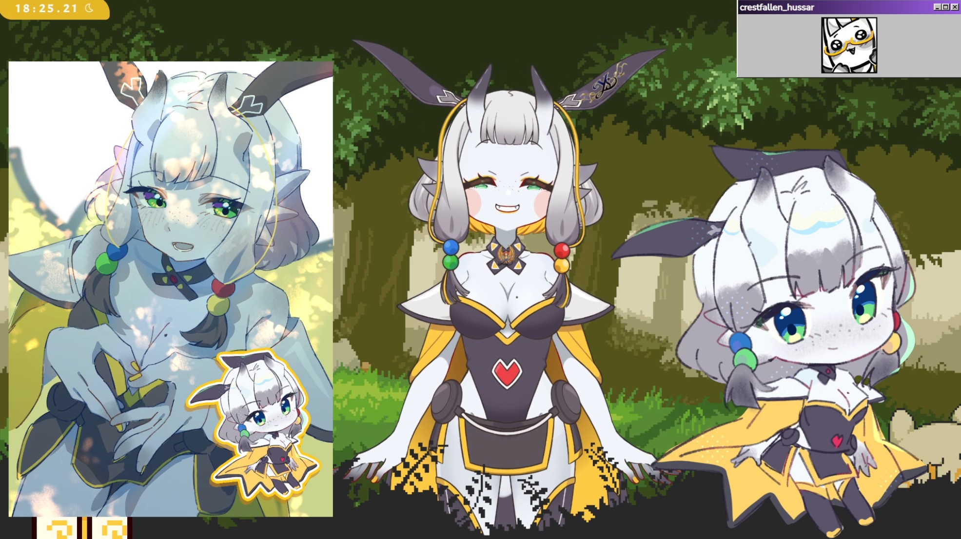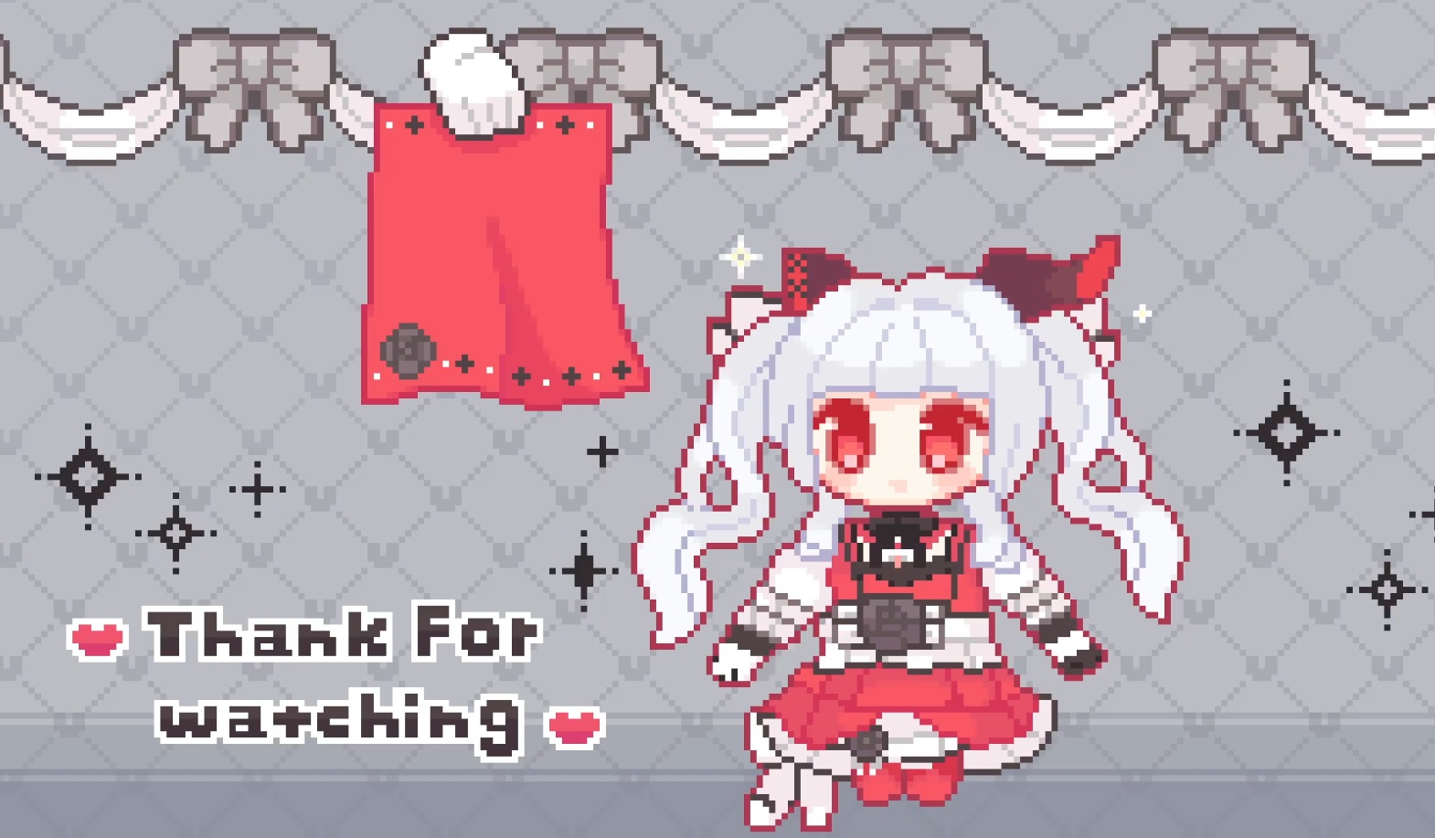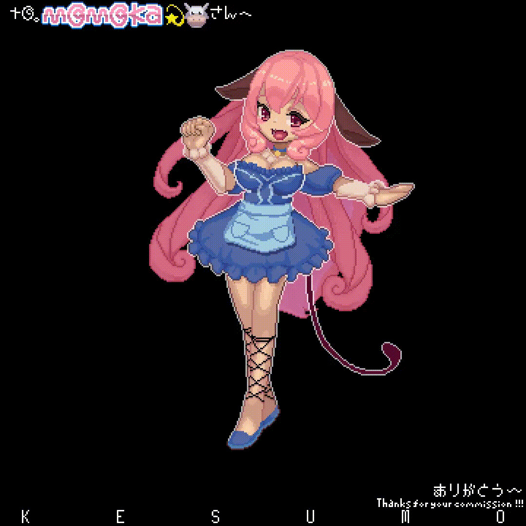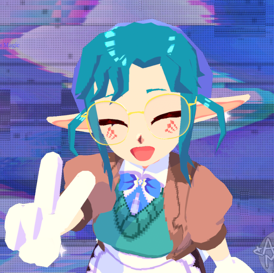 >Pixel art animation of her old model doing a magical girl transformation into her new one
