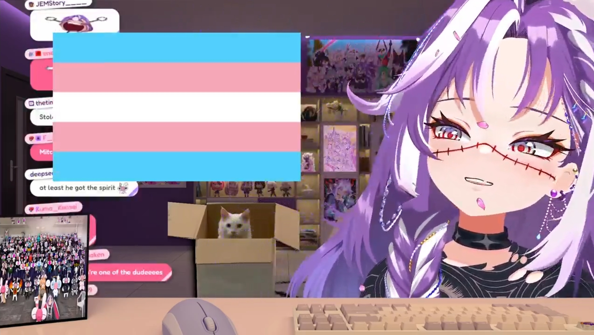 Michi's brother tried to buy her a bi-sexual flag as a gift but ended up buying her a giant trans flag because he thought it was the bi-sexual flag in pastel colors.