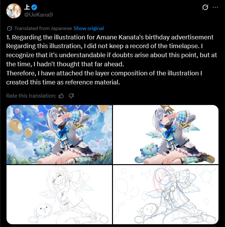 >>111222643sounds like speculation, the artist can draw proper kanatans since October 2024 when AI gen was even more dogshithttps://x.com/UeKana9/status/1850569563903291626